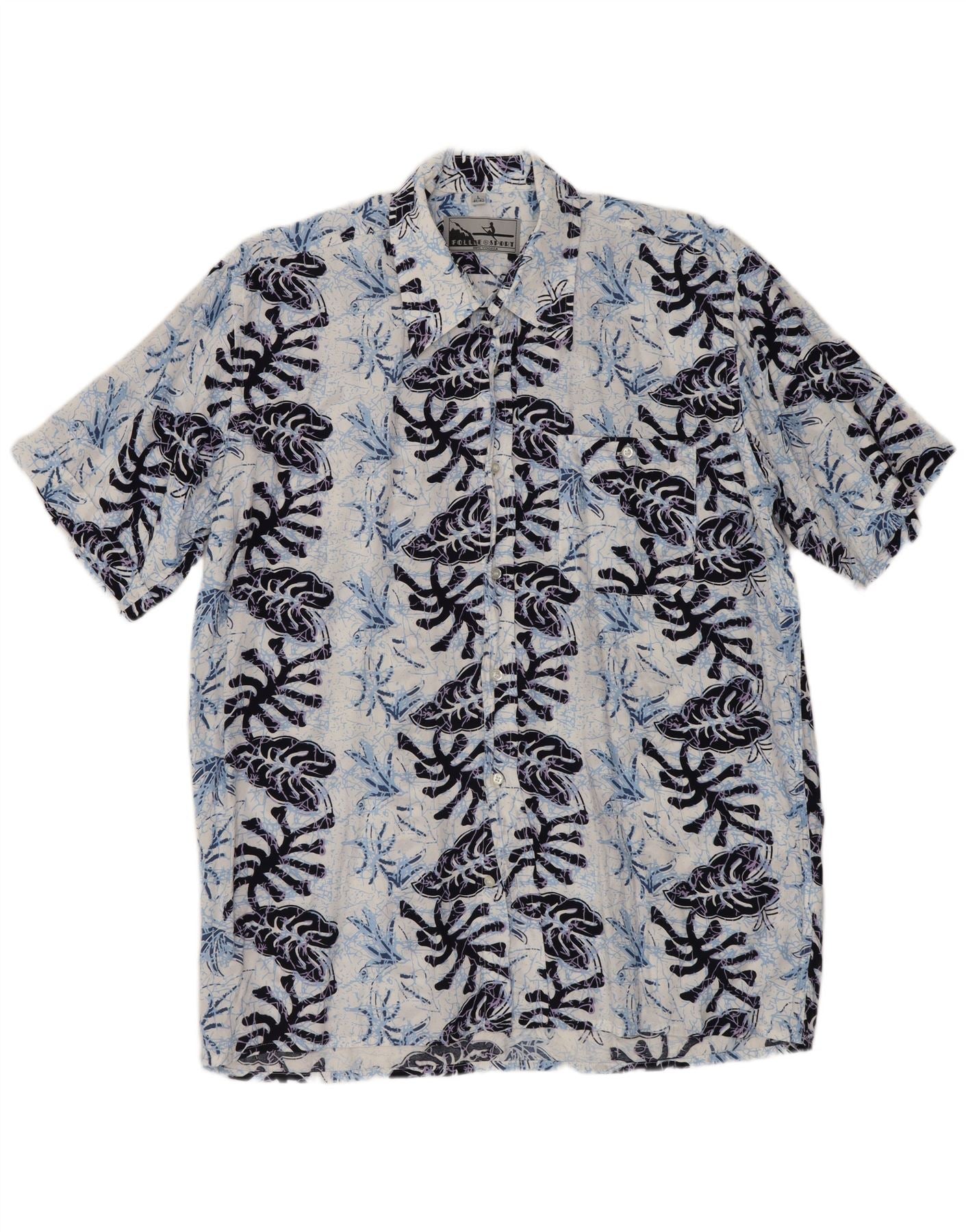 FOLLIE Mens Short Sleeve Shirt Size 41/42 Large Navy Blue Floral Viscose