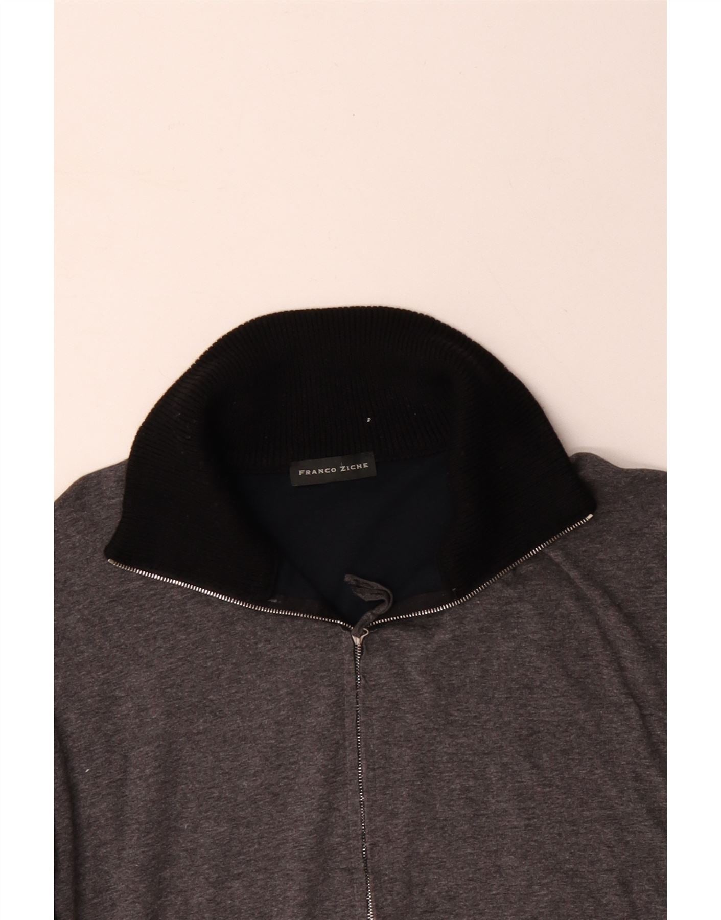 FRANCO ZICHE Mens Zip Neck Sweatshirt Jumper Large Grey Colourblock