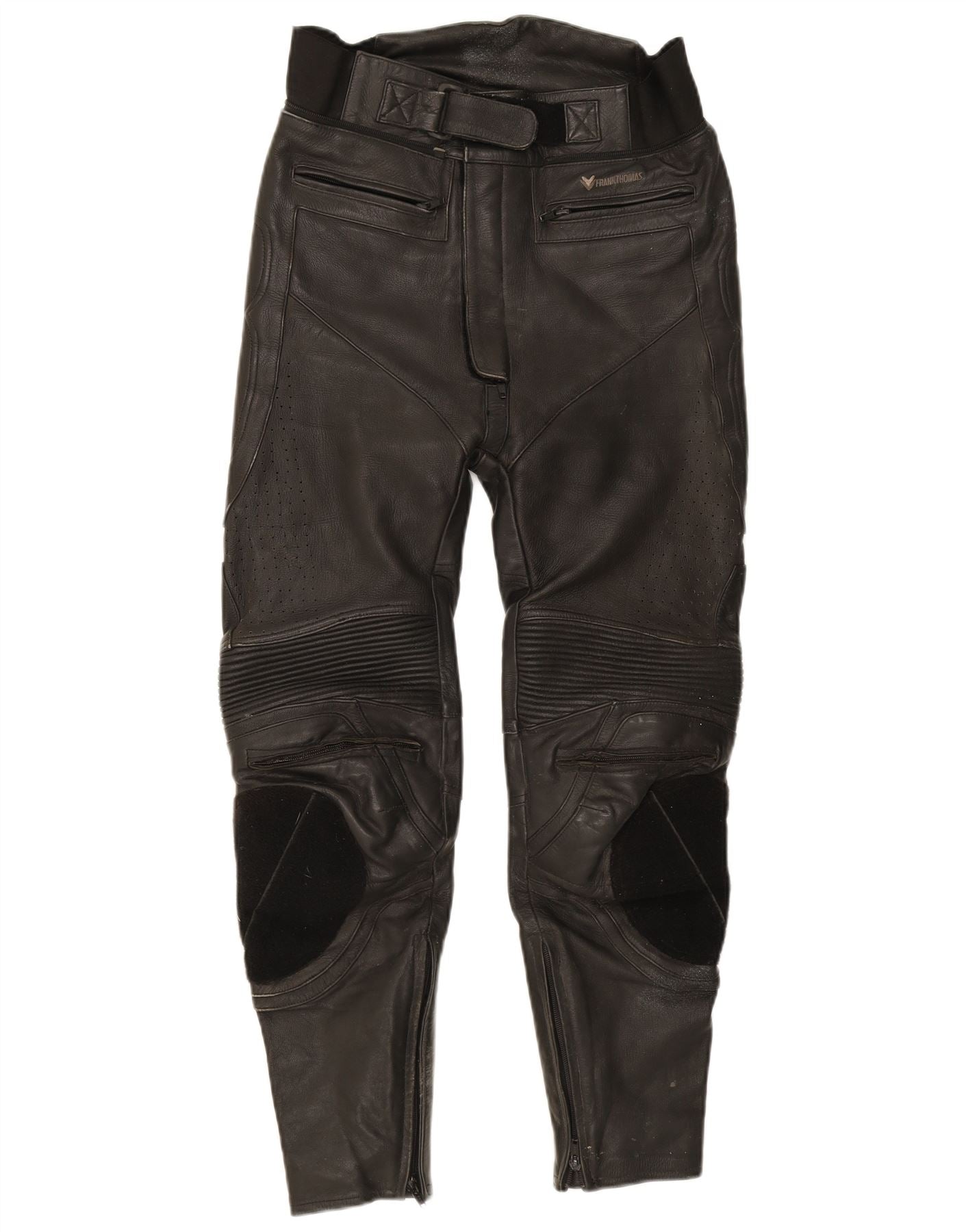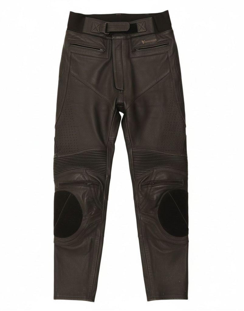 FRANK THOMAS Mens Leather Moto Racer Trousers W30 L26 Black Leather