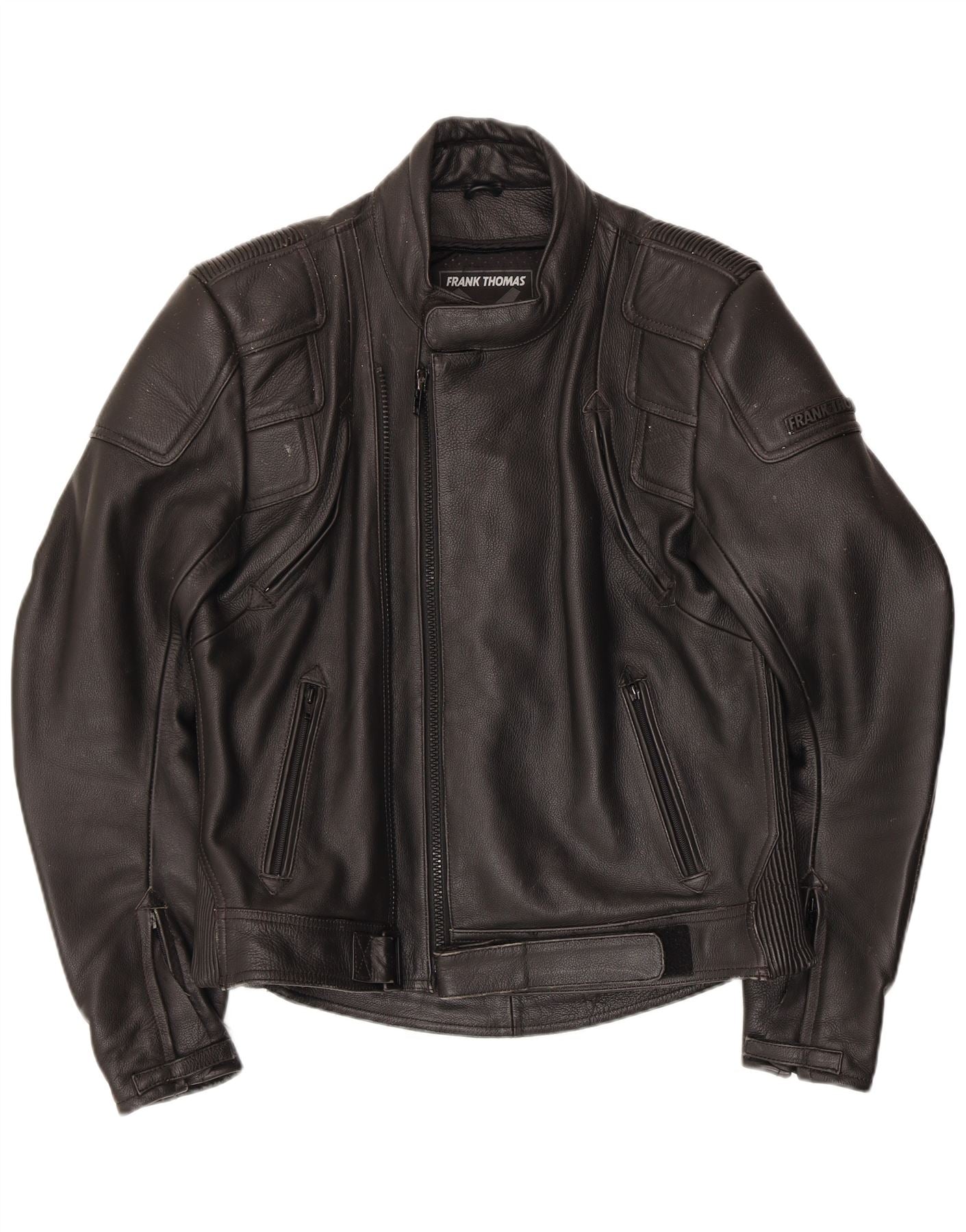 FRANK THOMAS Mens Leather Racer Jacket UK 42 XL Black Leather