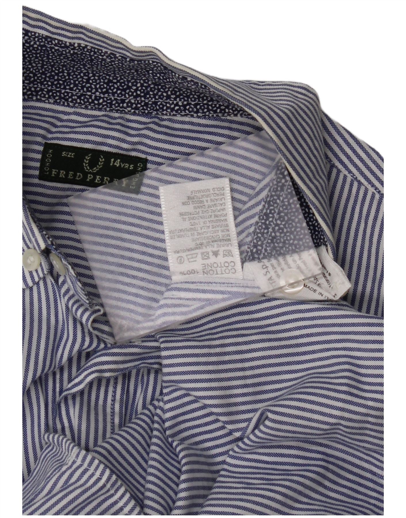 FRED PERRY Boys Shirt 13-14 Years Navy Blue Pinstripe Cotton