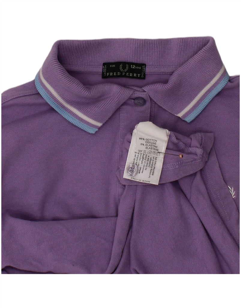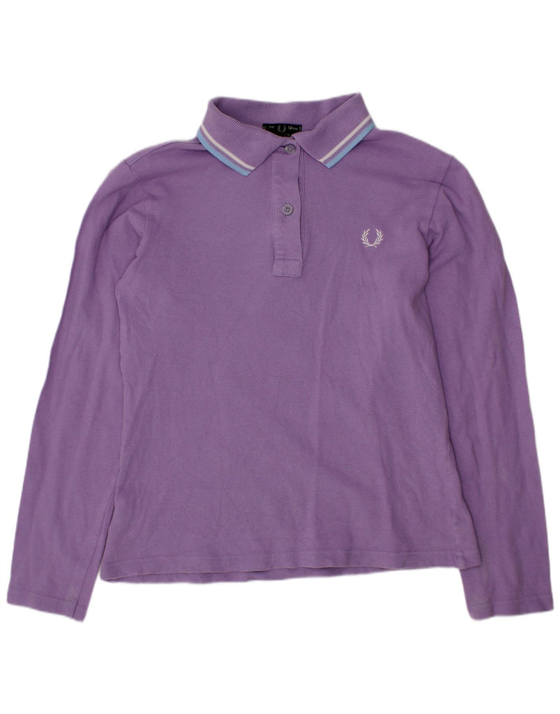 FRED PERRY Girls Long Sleeve Polo Shirt 11-12 Years Purple Cotton