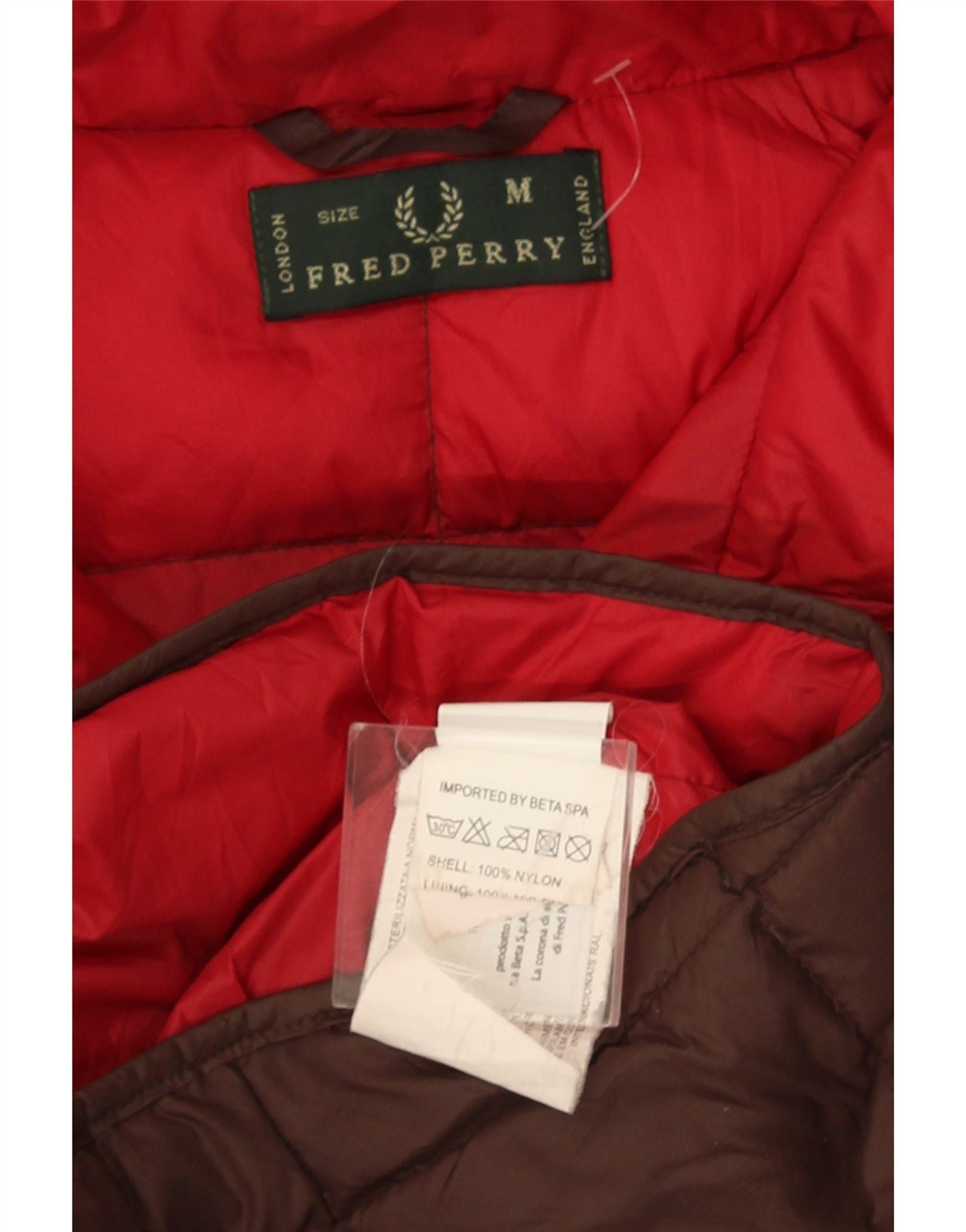 Fred Perry Mens Hooded Padded Jacket UK 38 Medium Brown Nylon