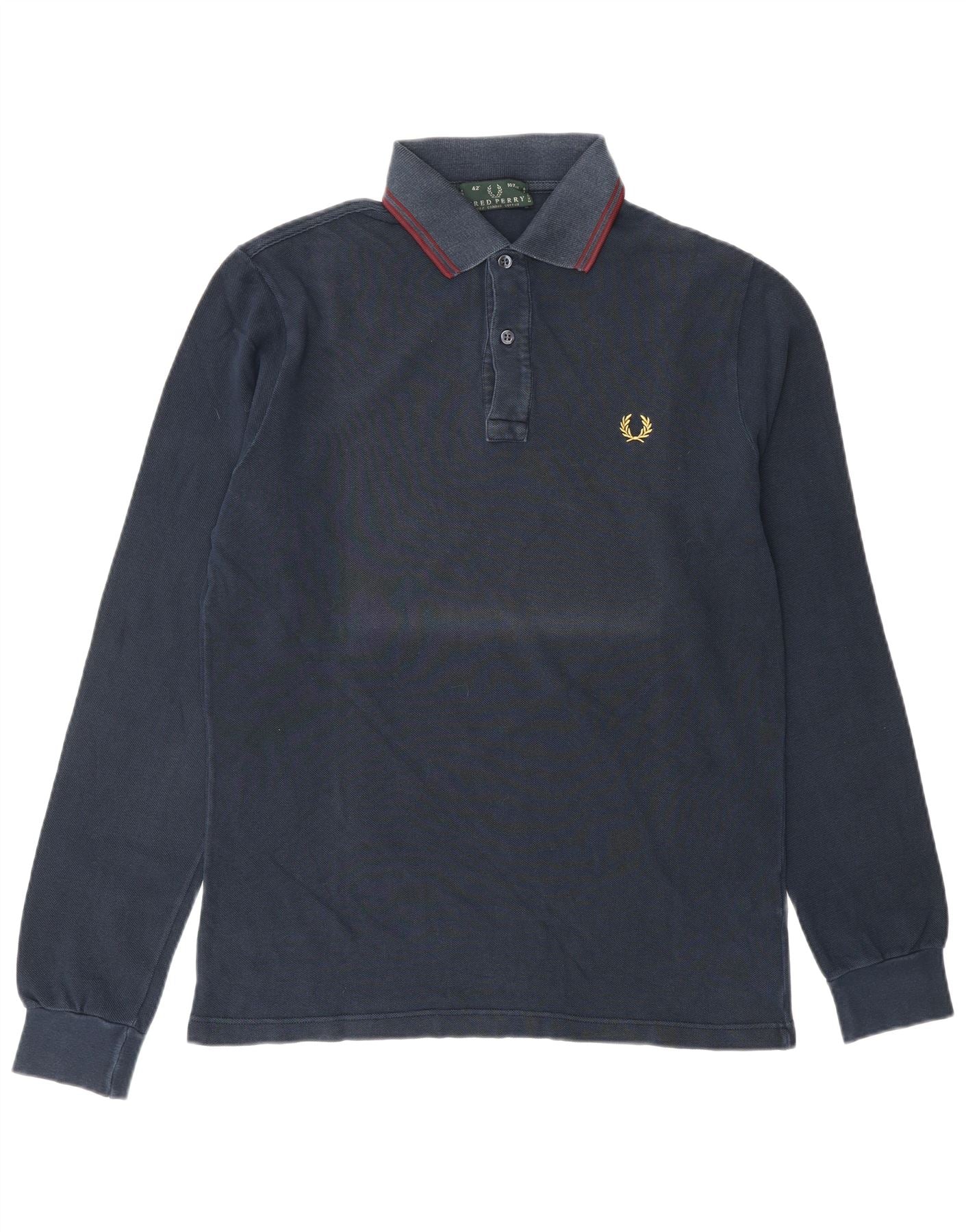 Fred Perry Mens Long Sleeve Polo Shirt Medium Navy Blue Cotton