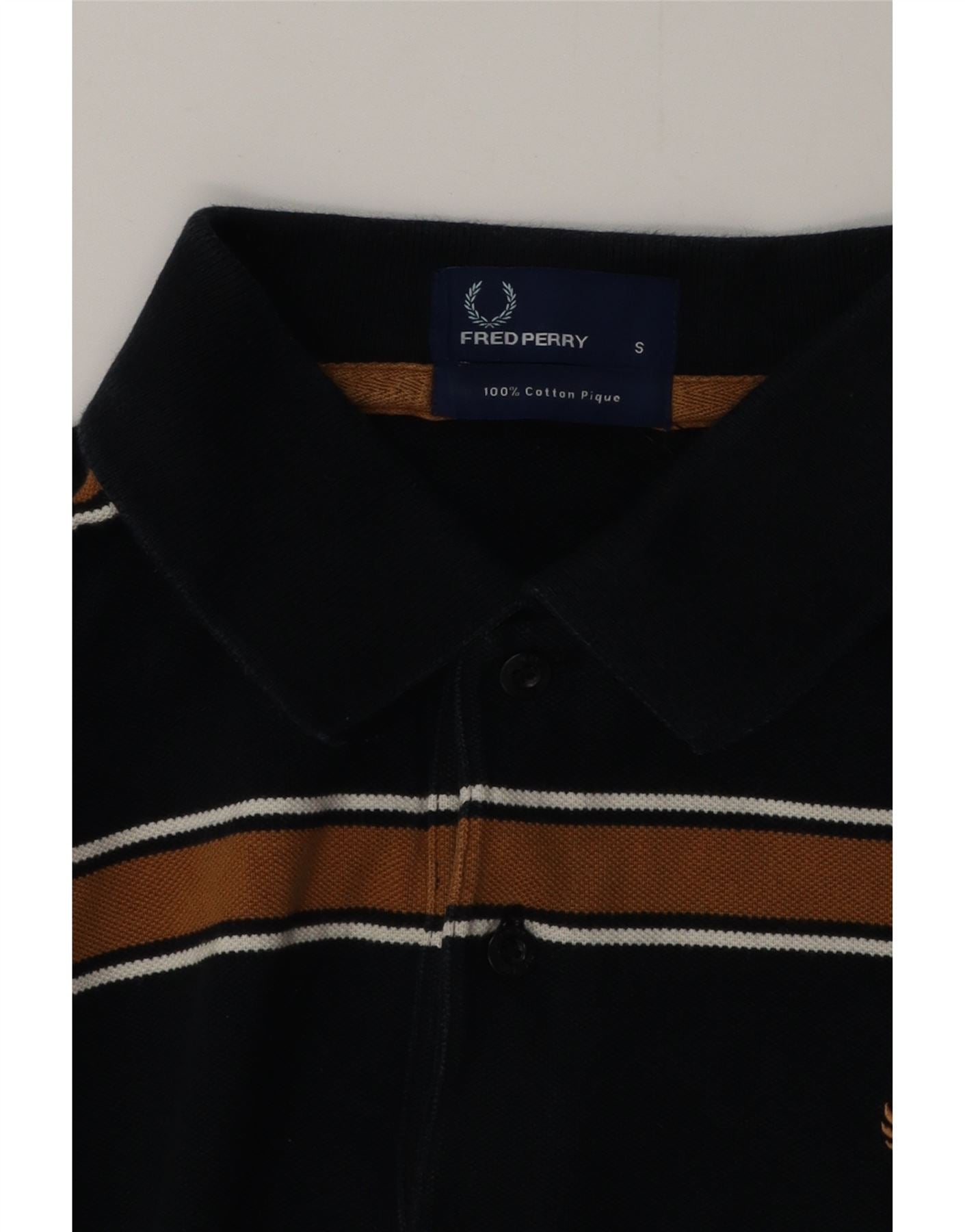 FRED PERRY Mens Polo Shirt Small Black Striped Cotton