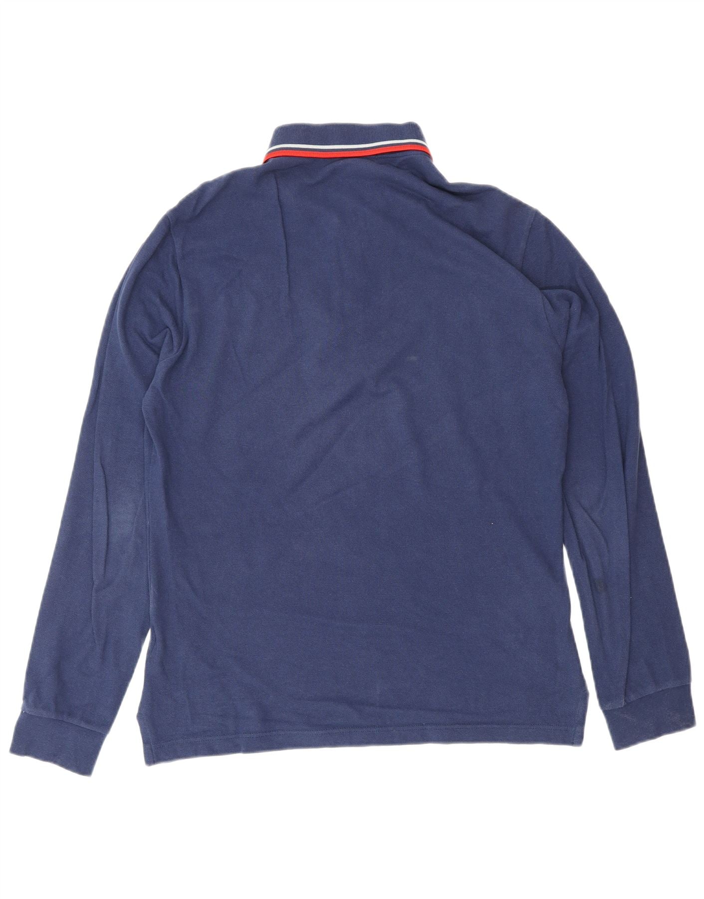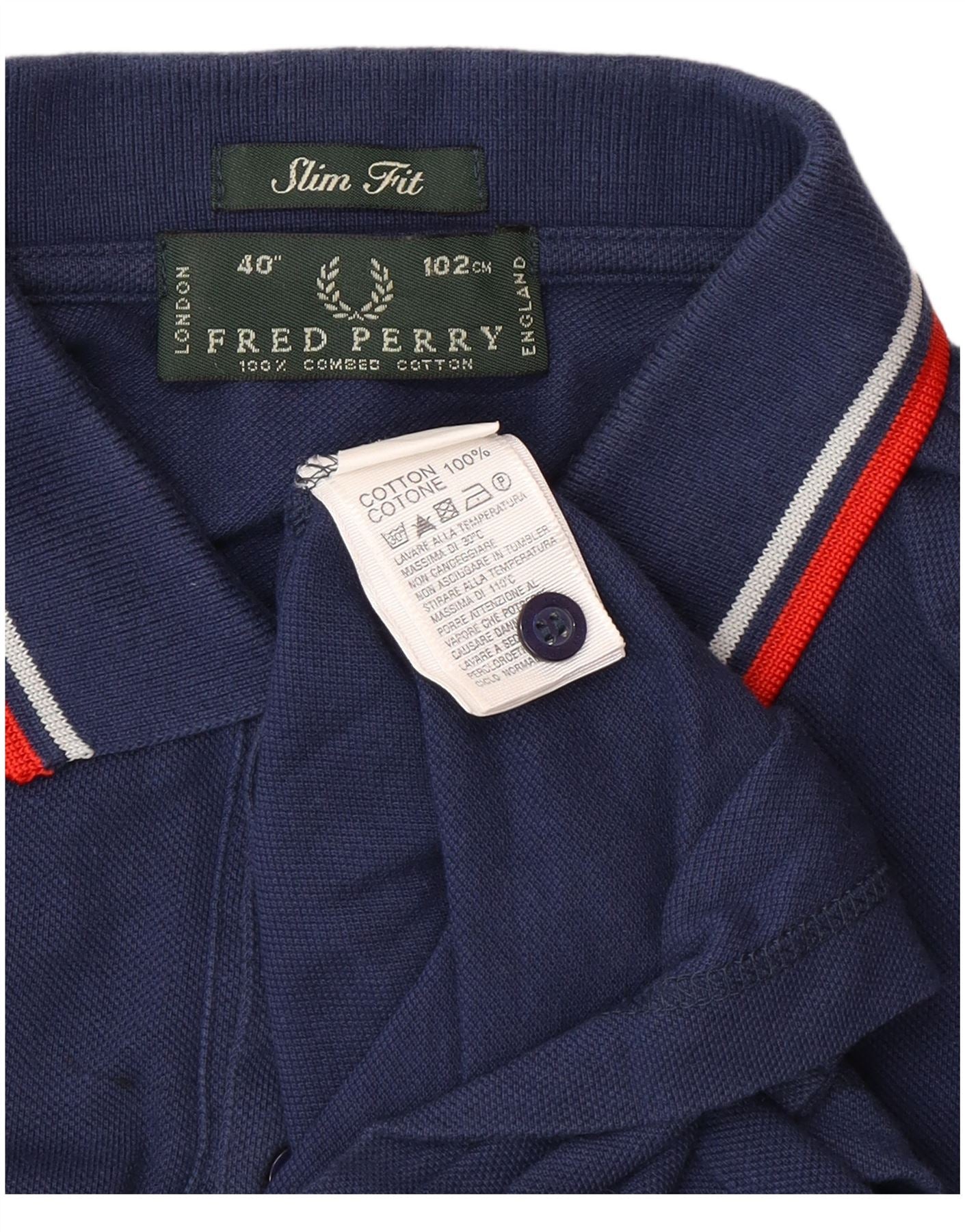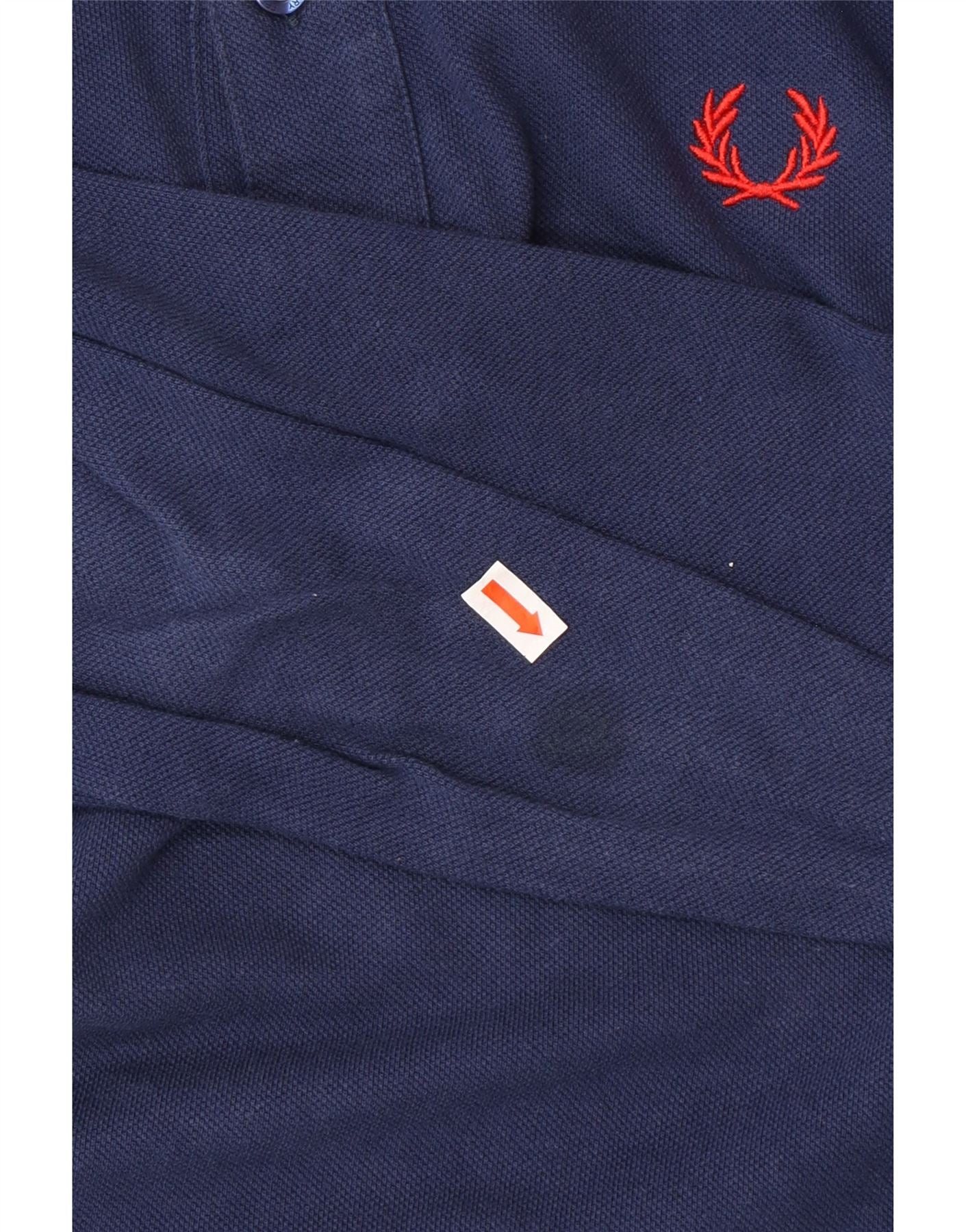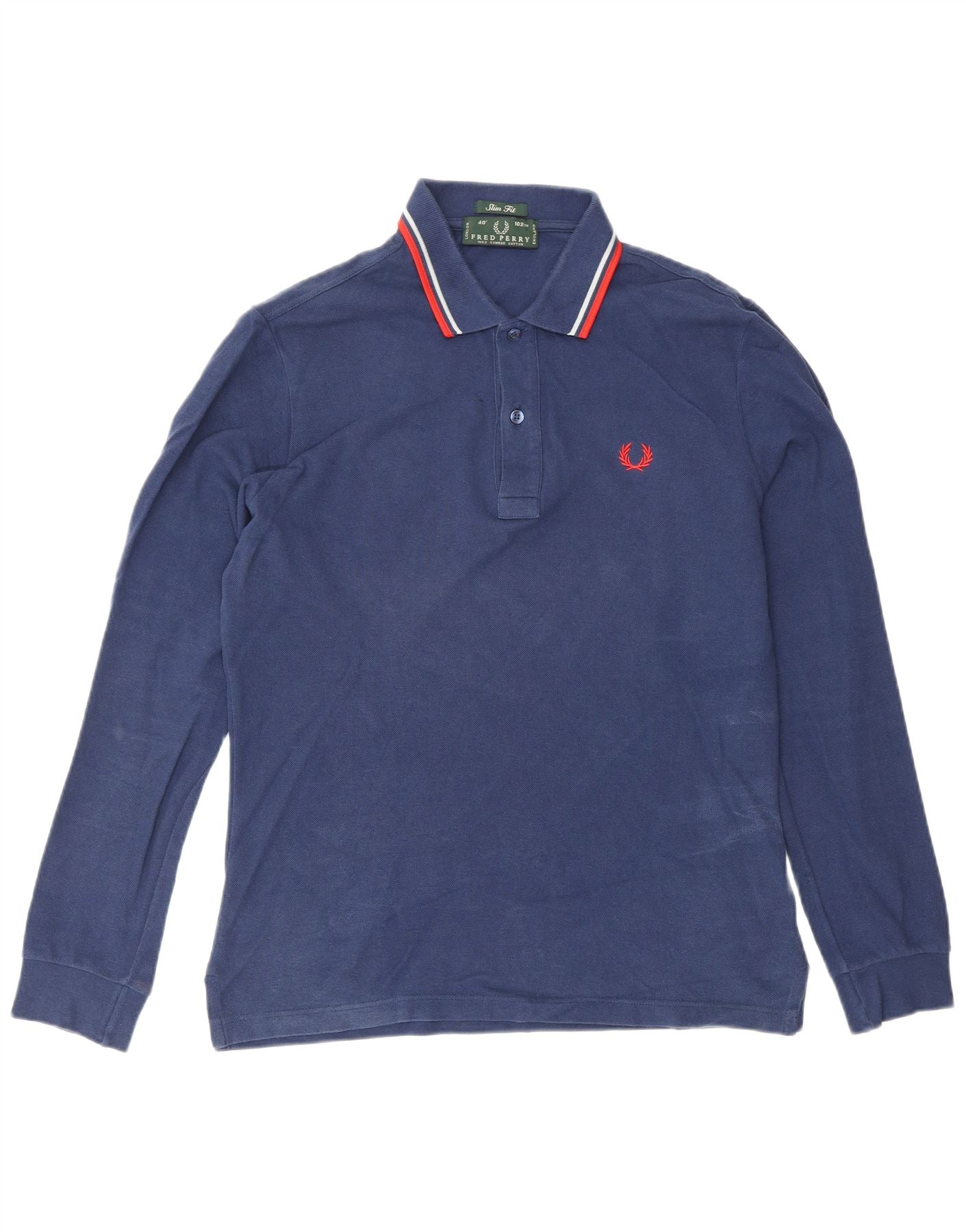 FRED PERRY Mens Slim Fit Long Sleeve Polo Shirt Medium Navy Blue Cotton