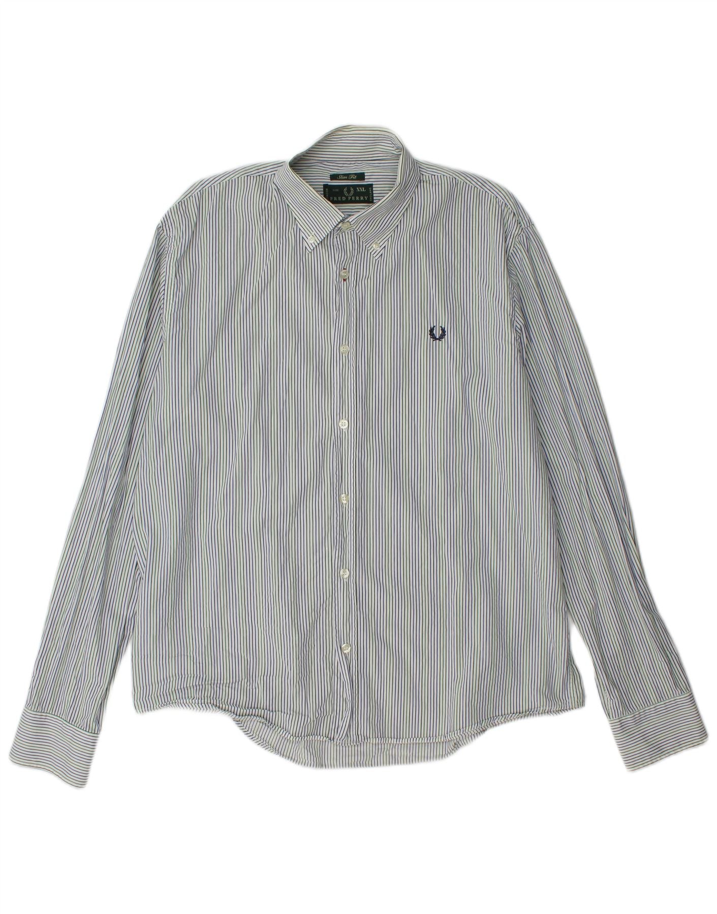 FRED PERRY Mens Slim Fit Shirt 2XL Blue Pinstripe Cotton