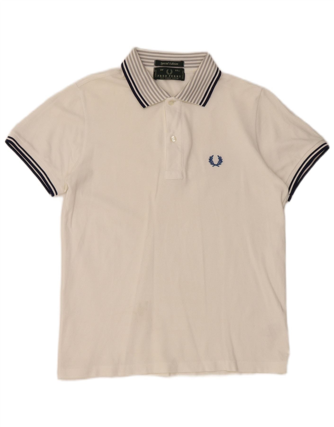FRED PERRY Mens Special Edition Polo Shirt Small White Cotton
