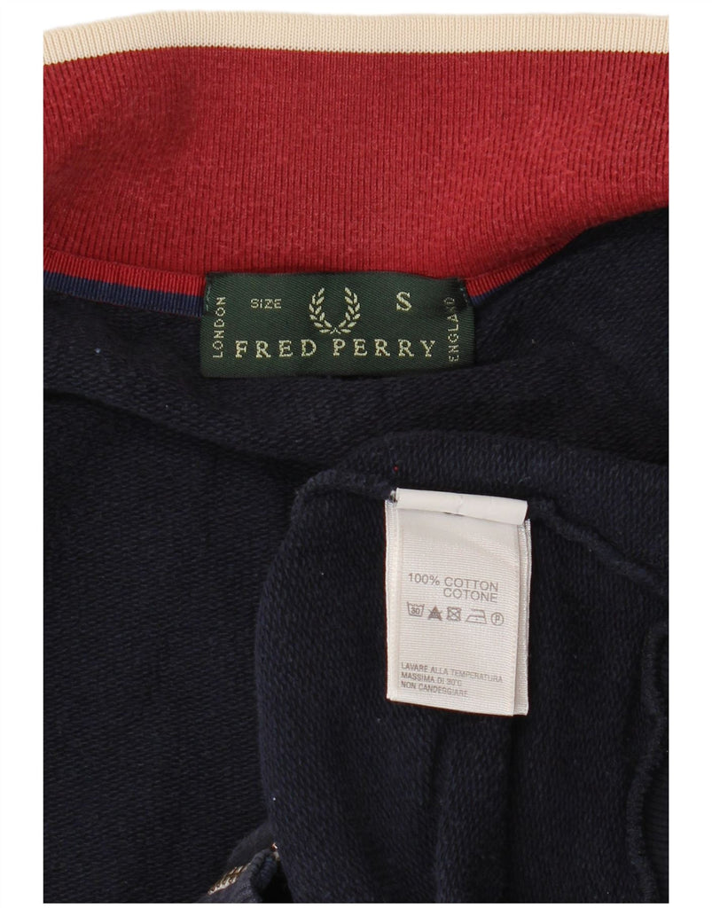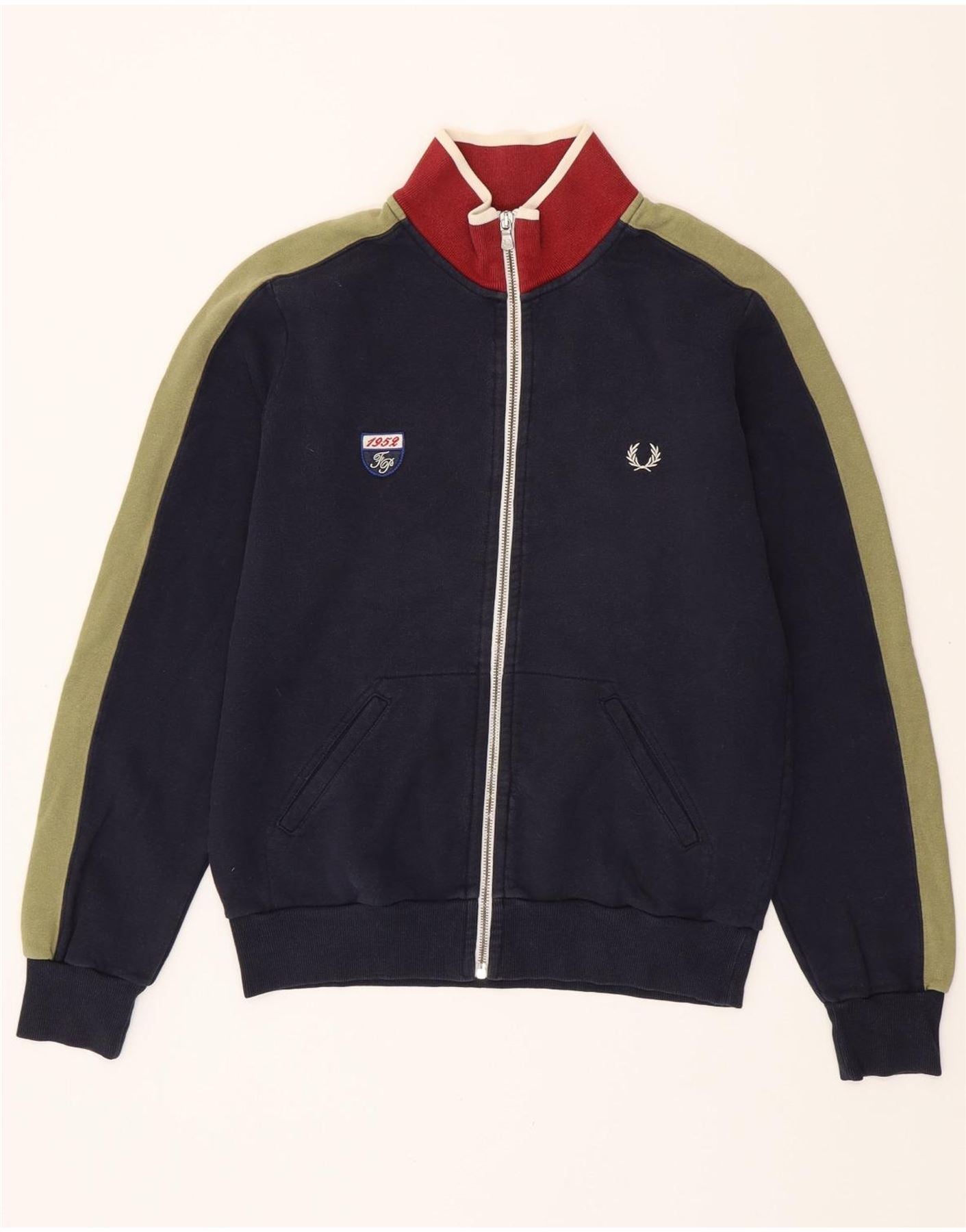 FRED PERRY Mens Tracksuit Top Jacket Small Navy Blue Colourblock Cotton