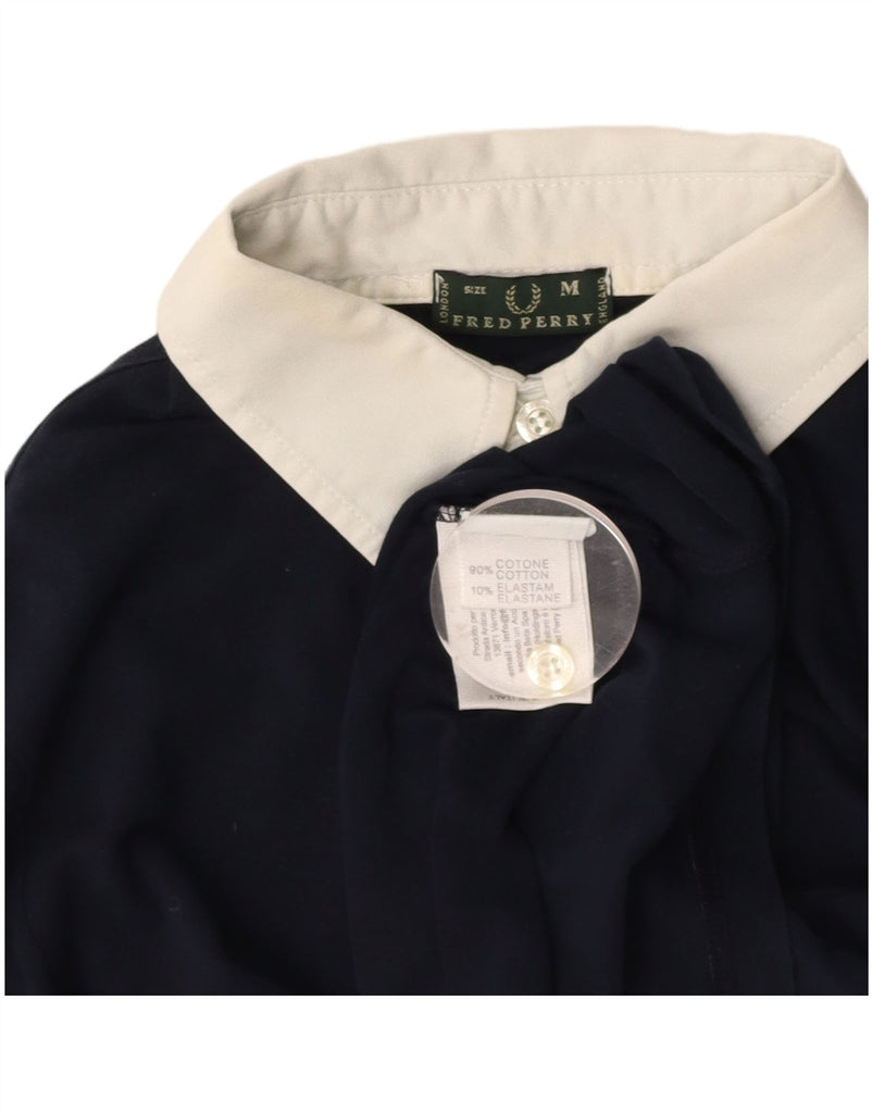 FRED PERRY Womens 3/4 Sleeve Polo Shirt UK 14 Medium Navy Blue Colourblock