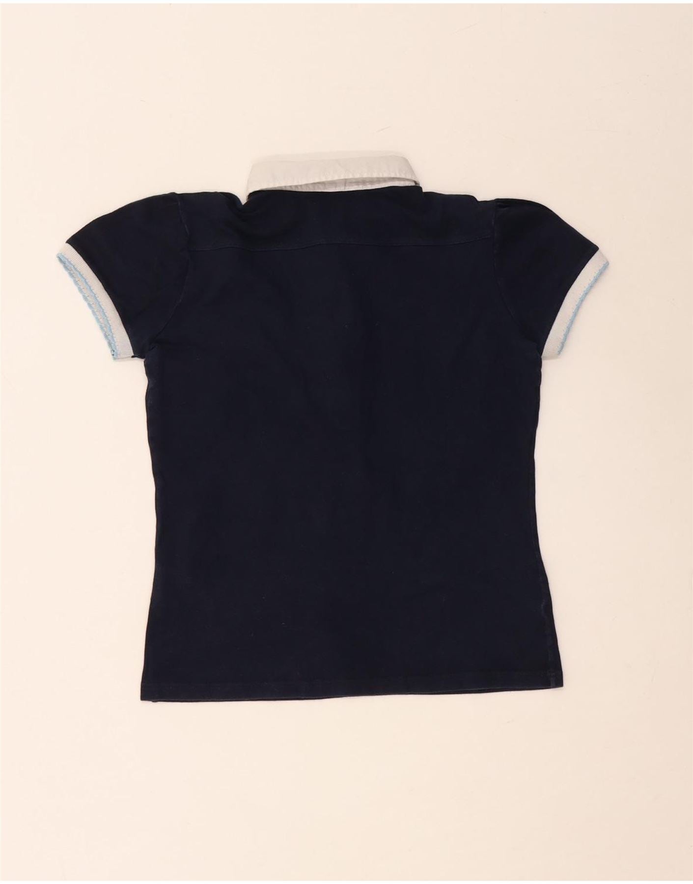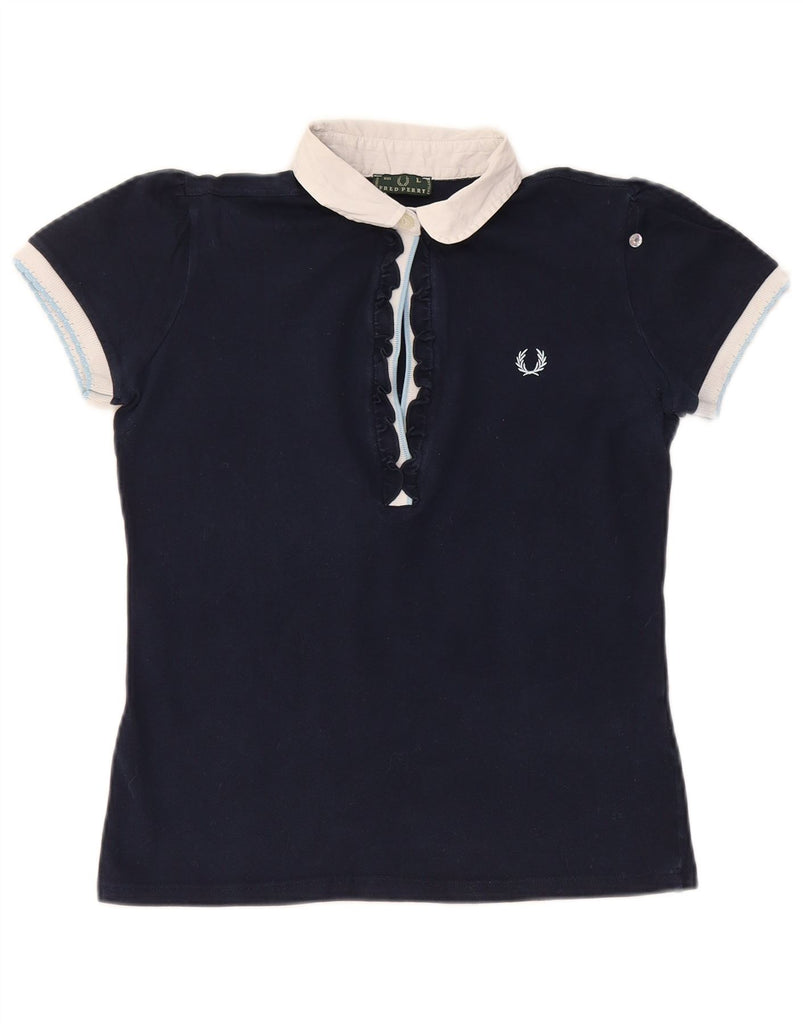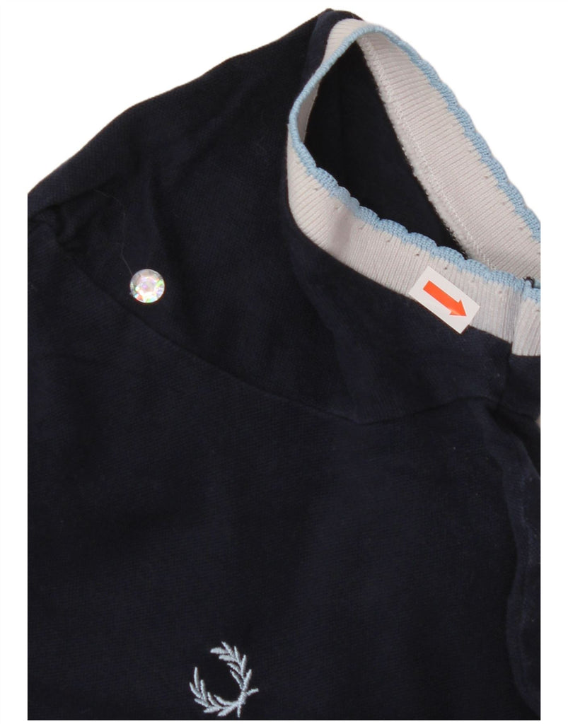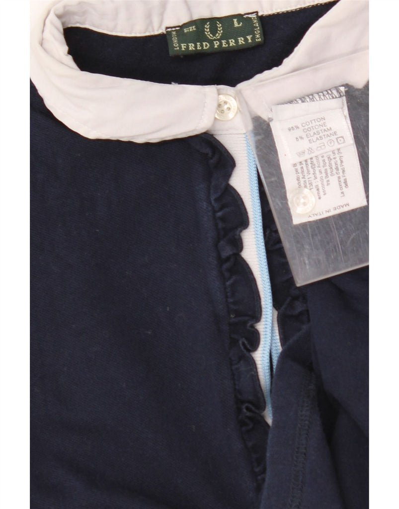 FRED PERRY Womens Crop Polo Shirt UK 14 Large Navy Blue Colourblock Cotton