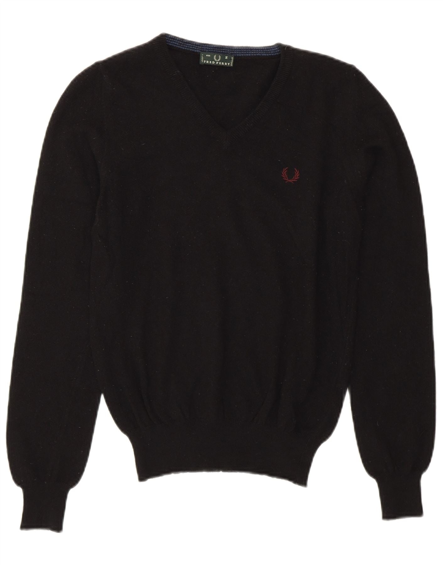 - AI Description: This Fred Perry womens V-Neck Jumper Sweater is crafted from a luxurious blend of superfine merino wool and cashmere knit. This creates a soft, smooth texture. It features a classic V-neckline and long sleeves. The regular fit ensures comfortable wear. Ribbed cuffs and hem provide a neat finish. An embroidered logo subtly accents the chest. The pullover style offers timeless elegance and versatility.