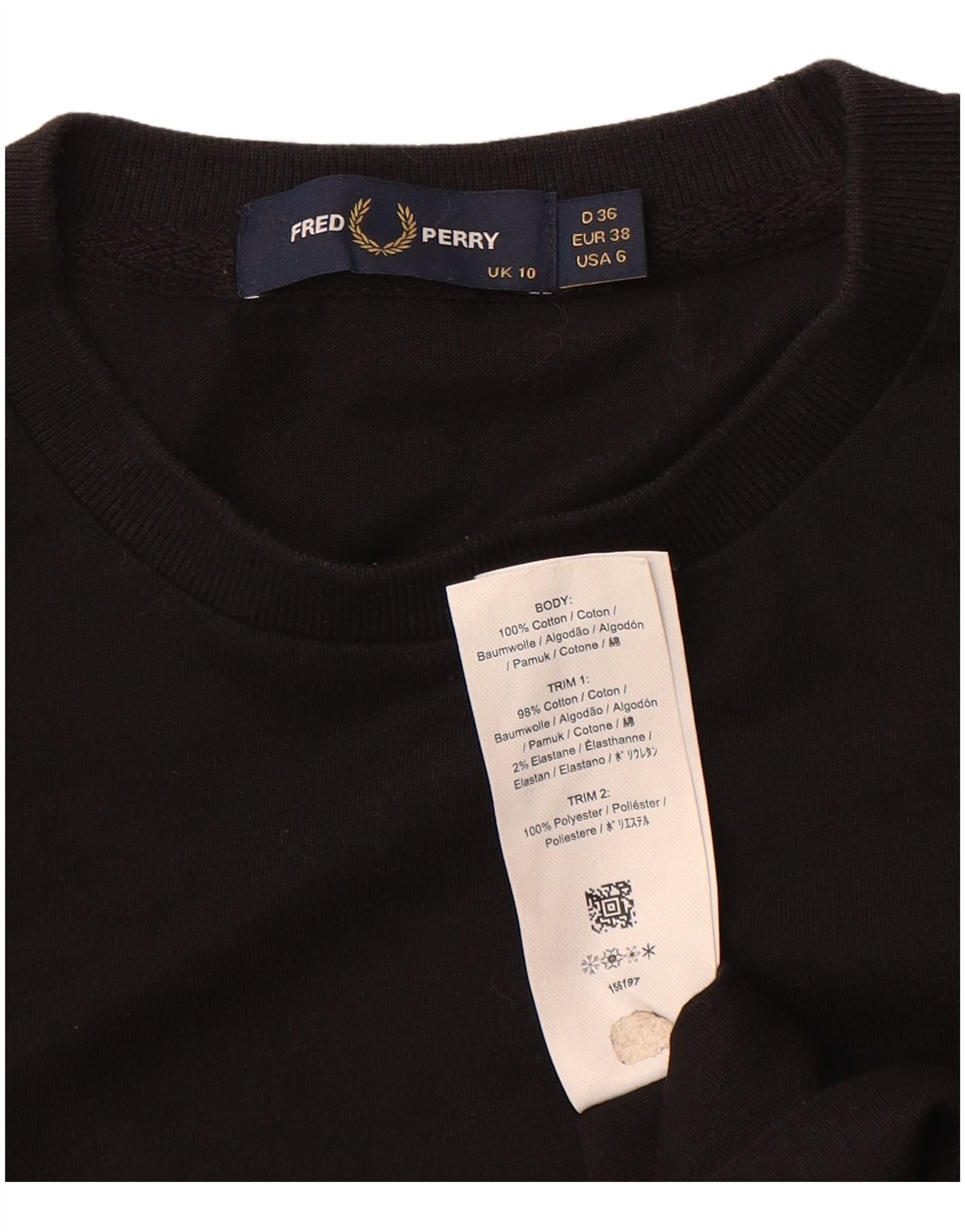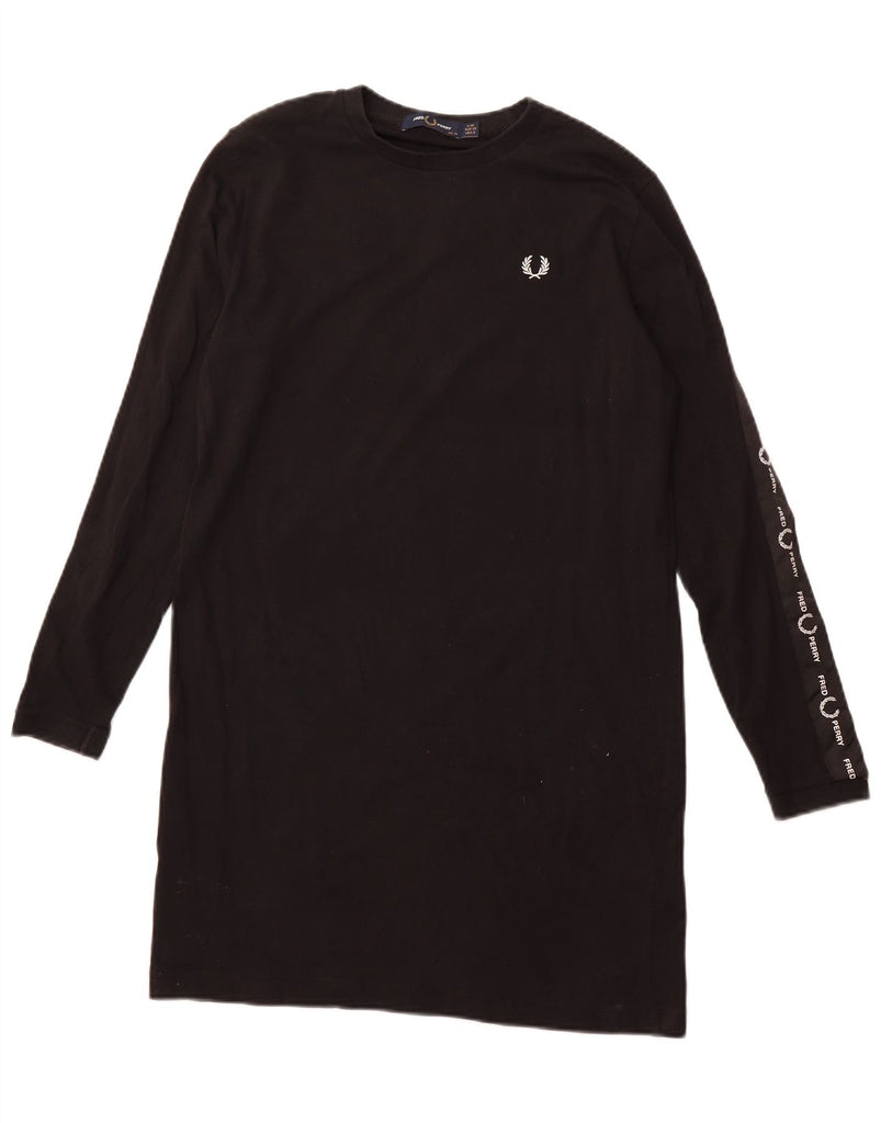 FRED PERRY Womens Oversized Graphic T-Shirt Dress UK 10 Small Black