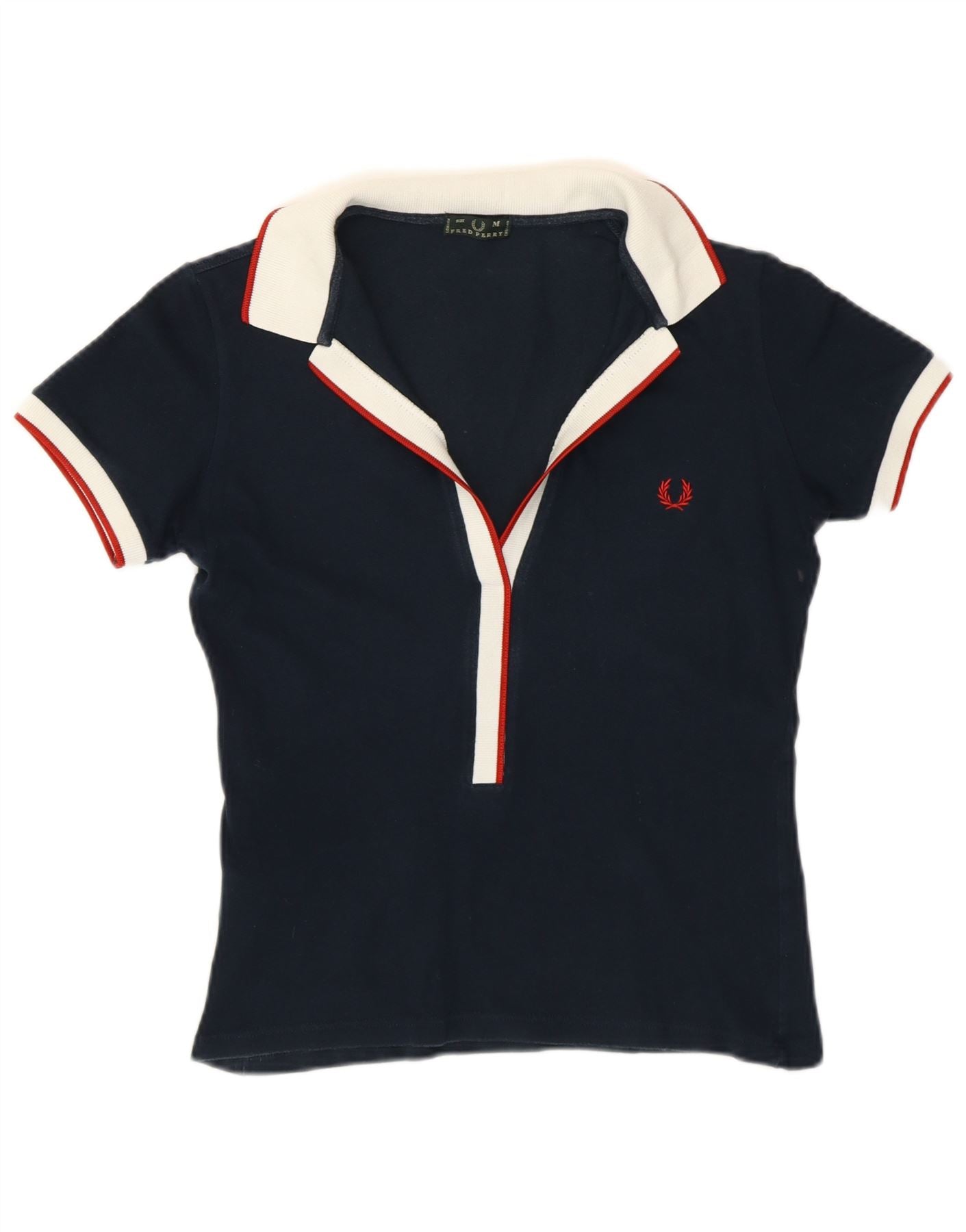 FRED PERRY Womens Polo Shirt UK 12 Medium Navy Blue