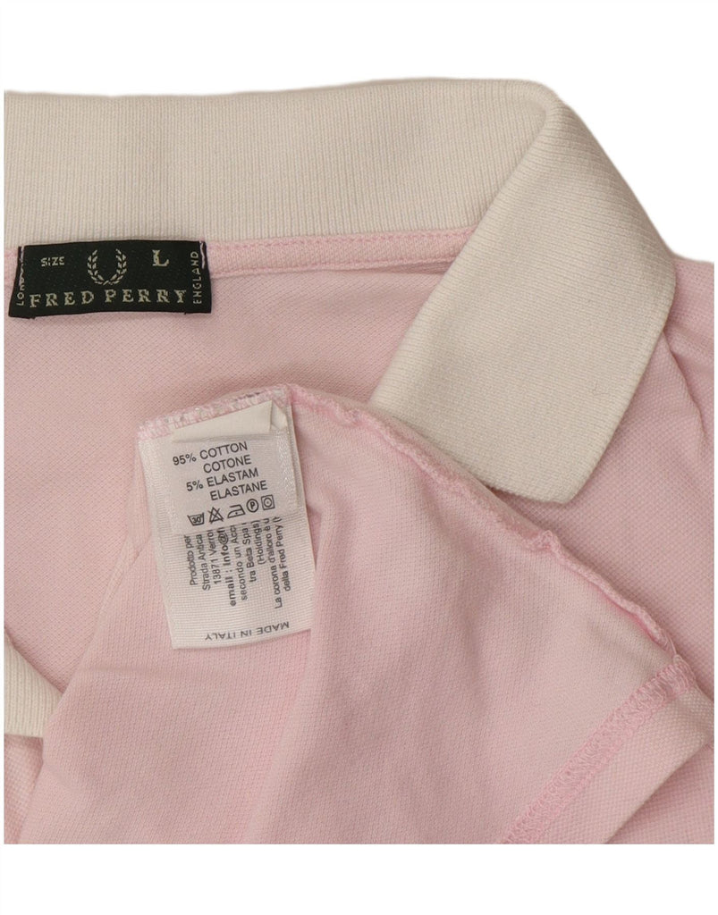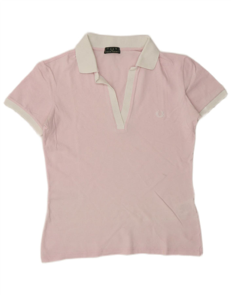 FRED PERRY Womens Polo Shirt UK 14 Large Pink Colourblock Cotton
