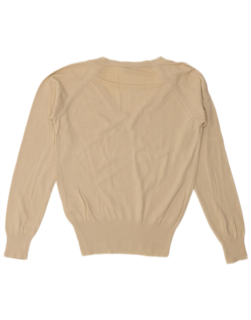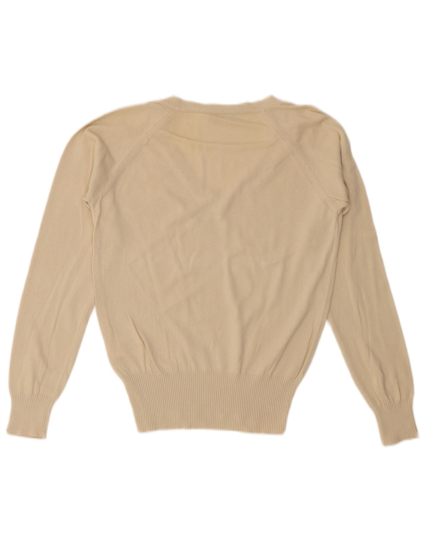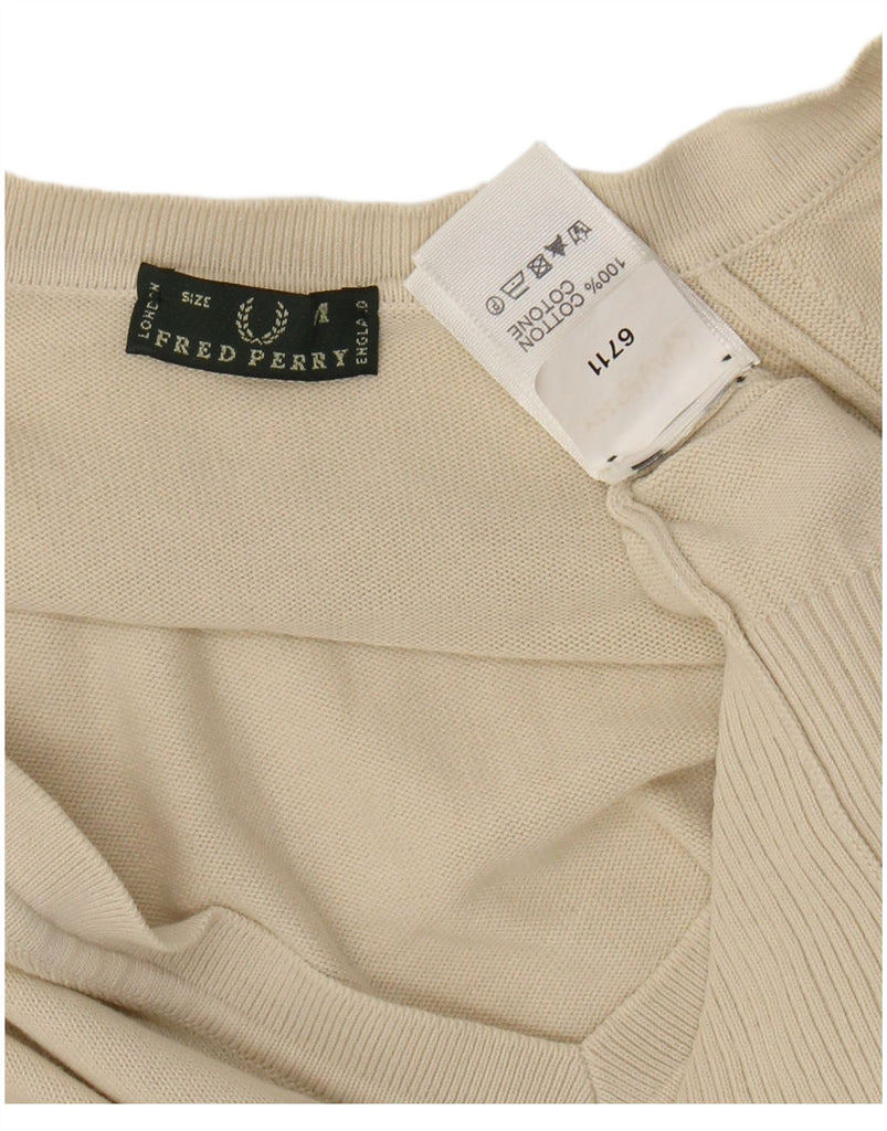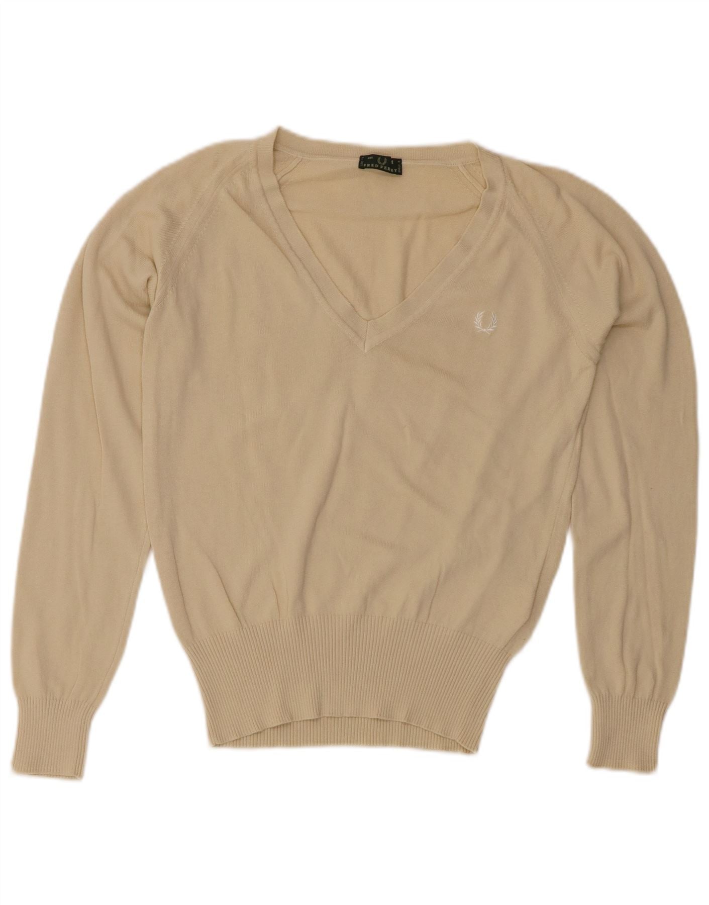 FRED PERRY Womens V-Neck Jumper Sweater UK 14 Medium Beige Cotton