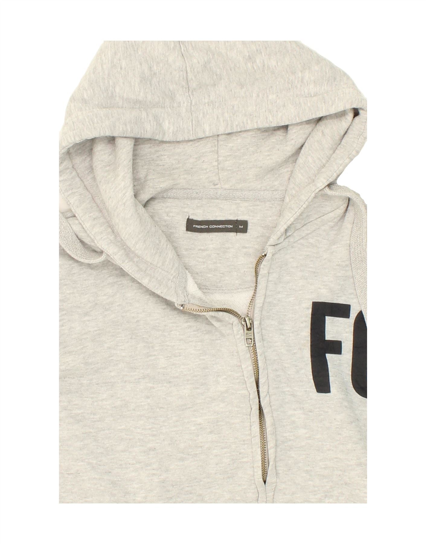 FRENCH CONNECTION Mens Graphic Zip Hoodie Sweater Medium Grey Cotton