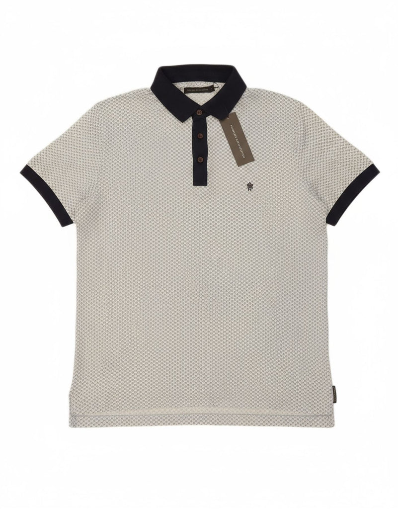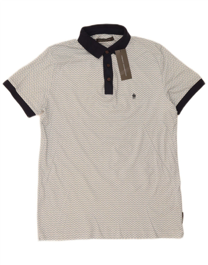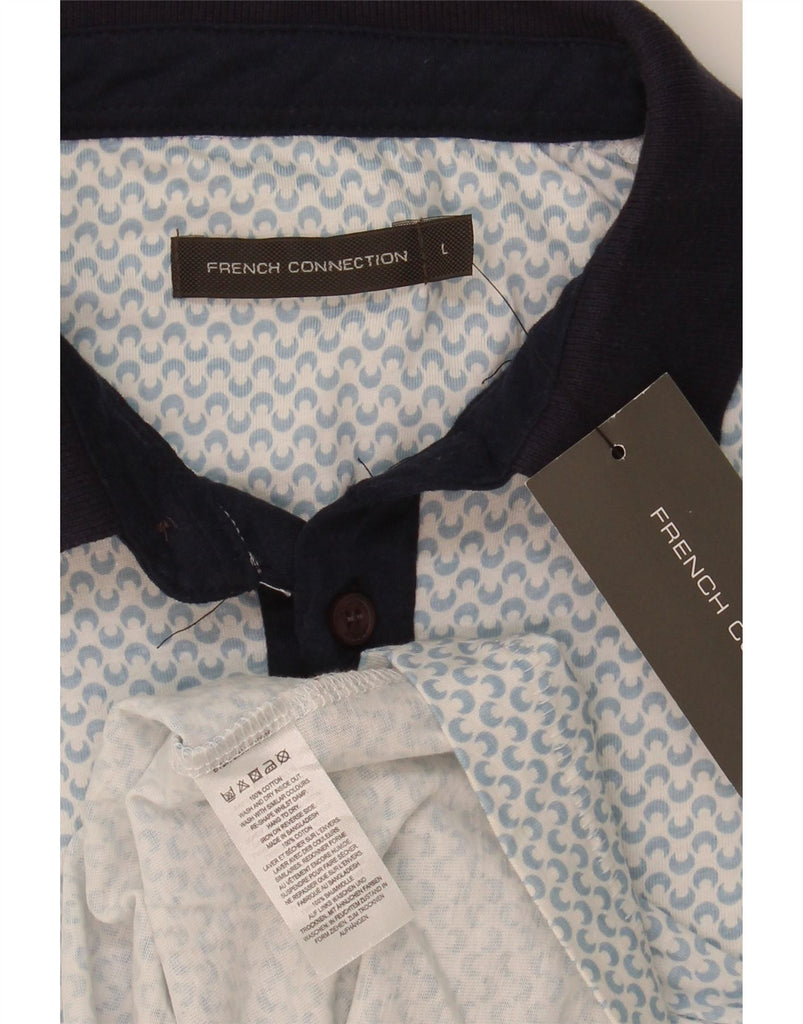 FRENCH CONNECTION Mens Polo Shirt Large Blue Geometric Cotton