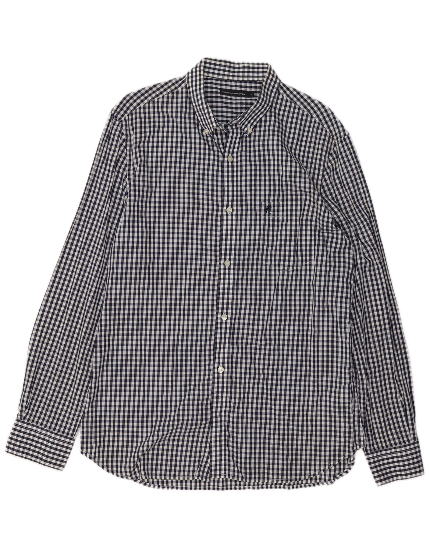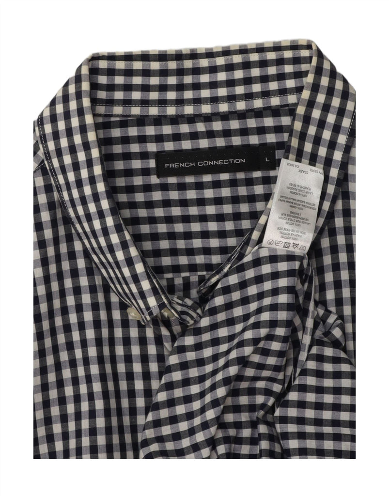 FRENCH CONNECTION Mens Shirt Large Navy Blue Gingham Cotton