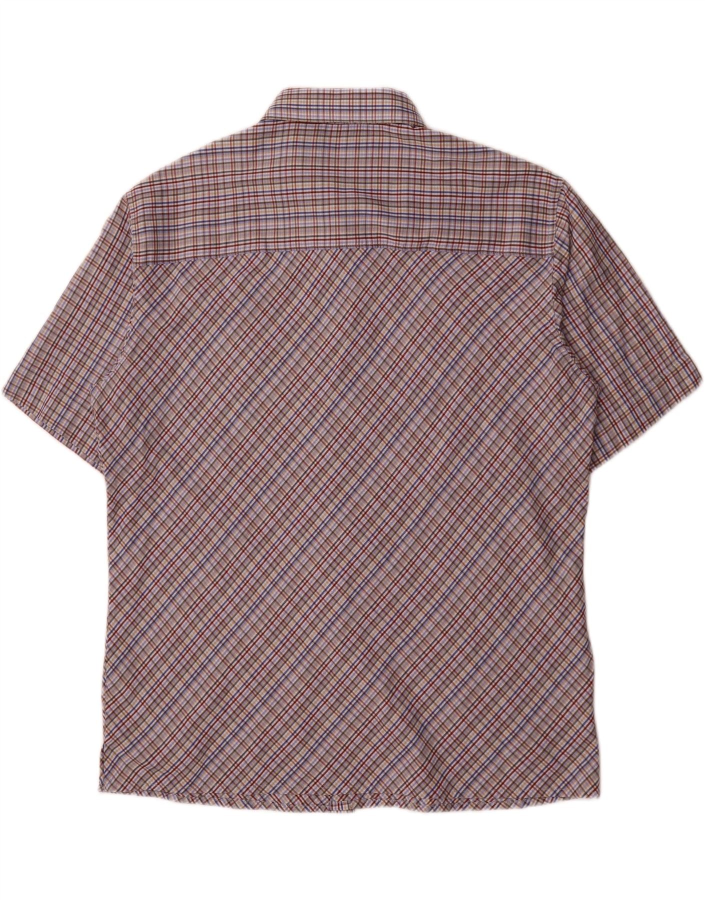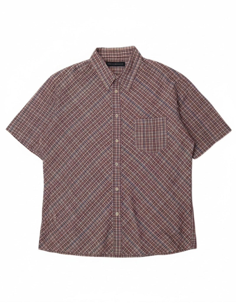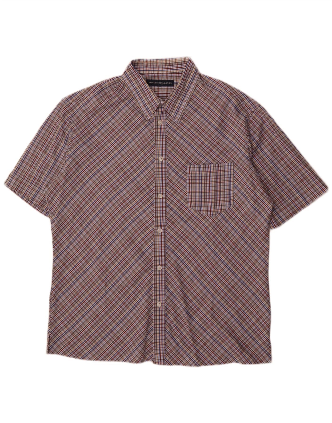 FRENCH CONNECTION Mens Short Sleeve Shirt Large Purple Check Polyester