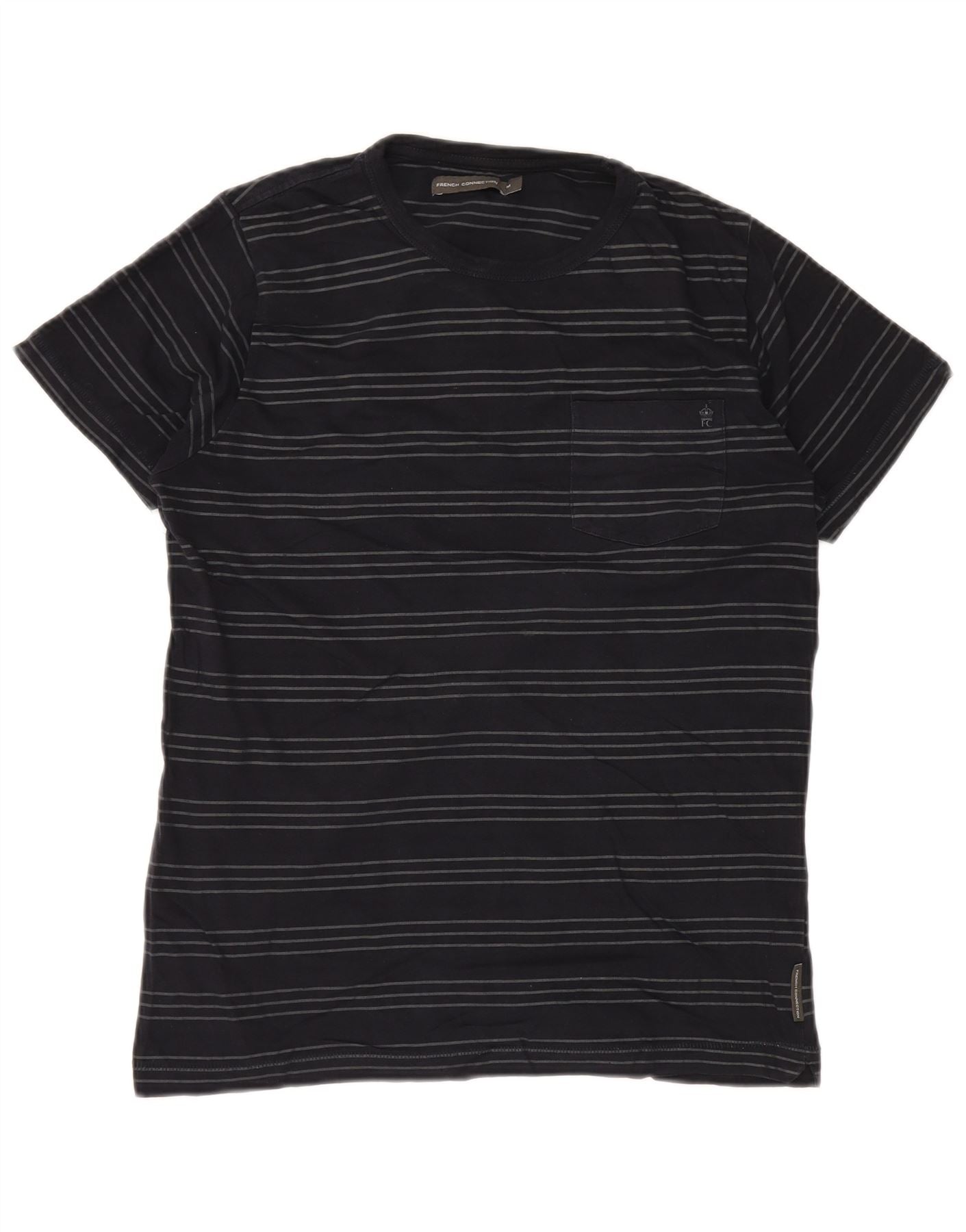 French Connection Mens T-Shirt Top Medium Navy Blue Striped Cotton