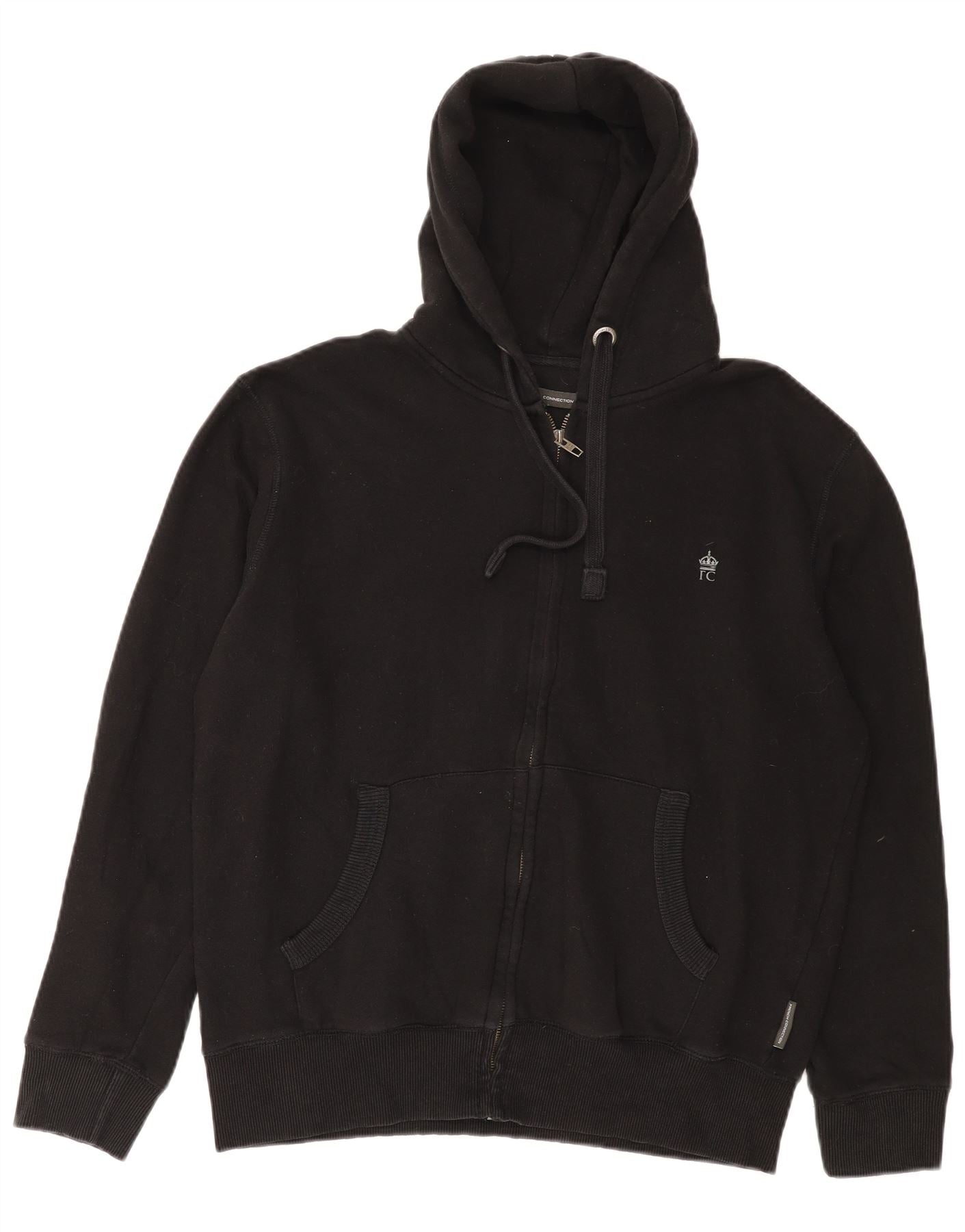 FRENCH CONNECTION Mens Zip Hoodie Sweater Large Black Cotton