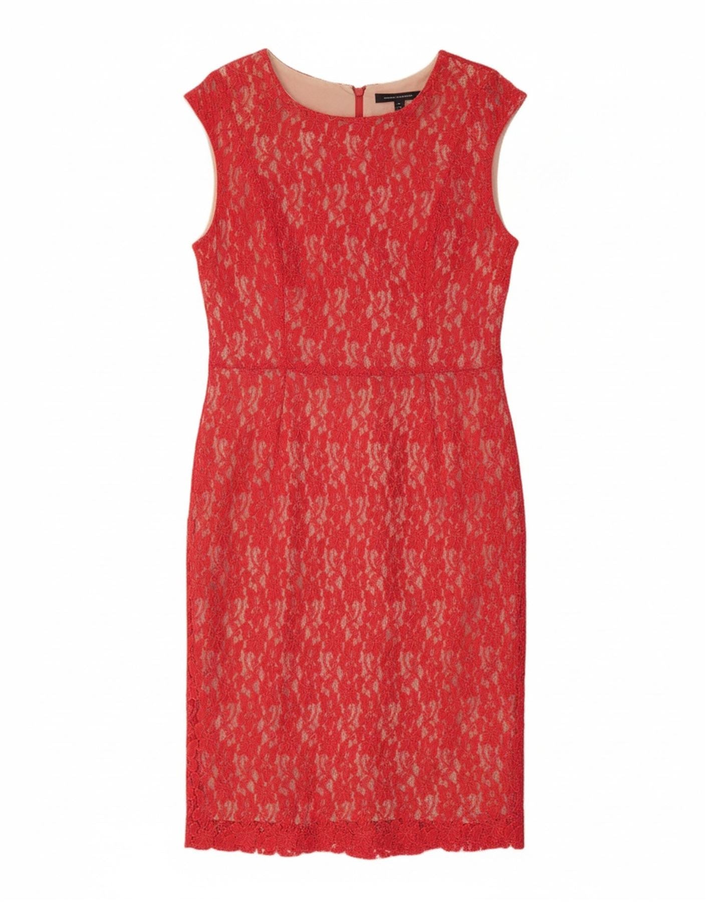 FRENCH CONNECTION Womens Sleeveless Lace Sheath Dress UK 16 Large Red