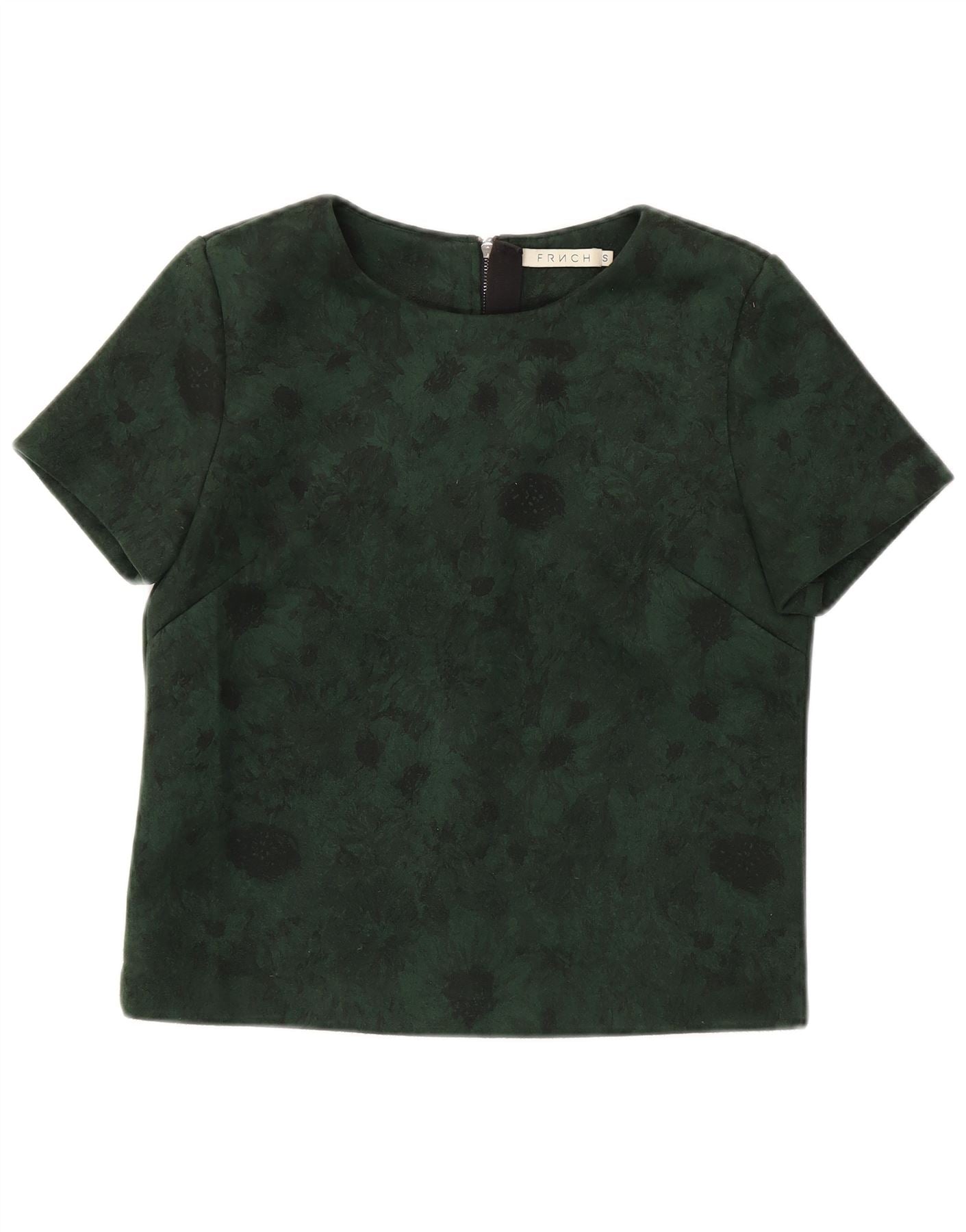 FRNCH Womens Crop Blouse Top UK 16 Small Green Floral Polyester