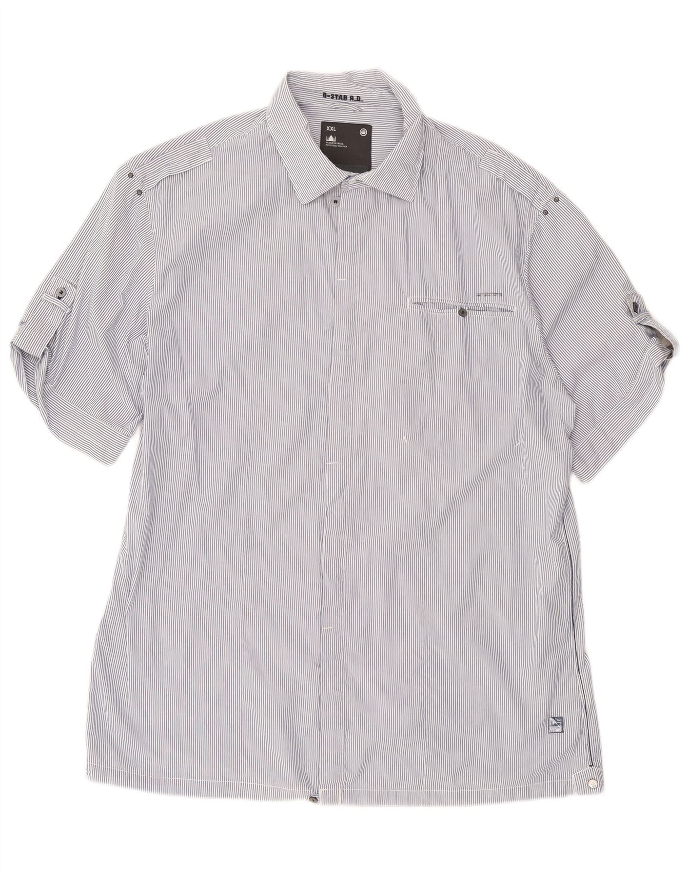 G-STAR Mens Short Sleeve Shirt 2XL Navy Blue Pinstripe Cotton