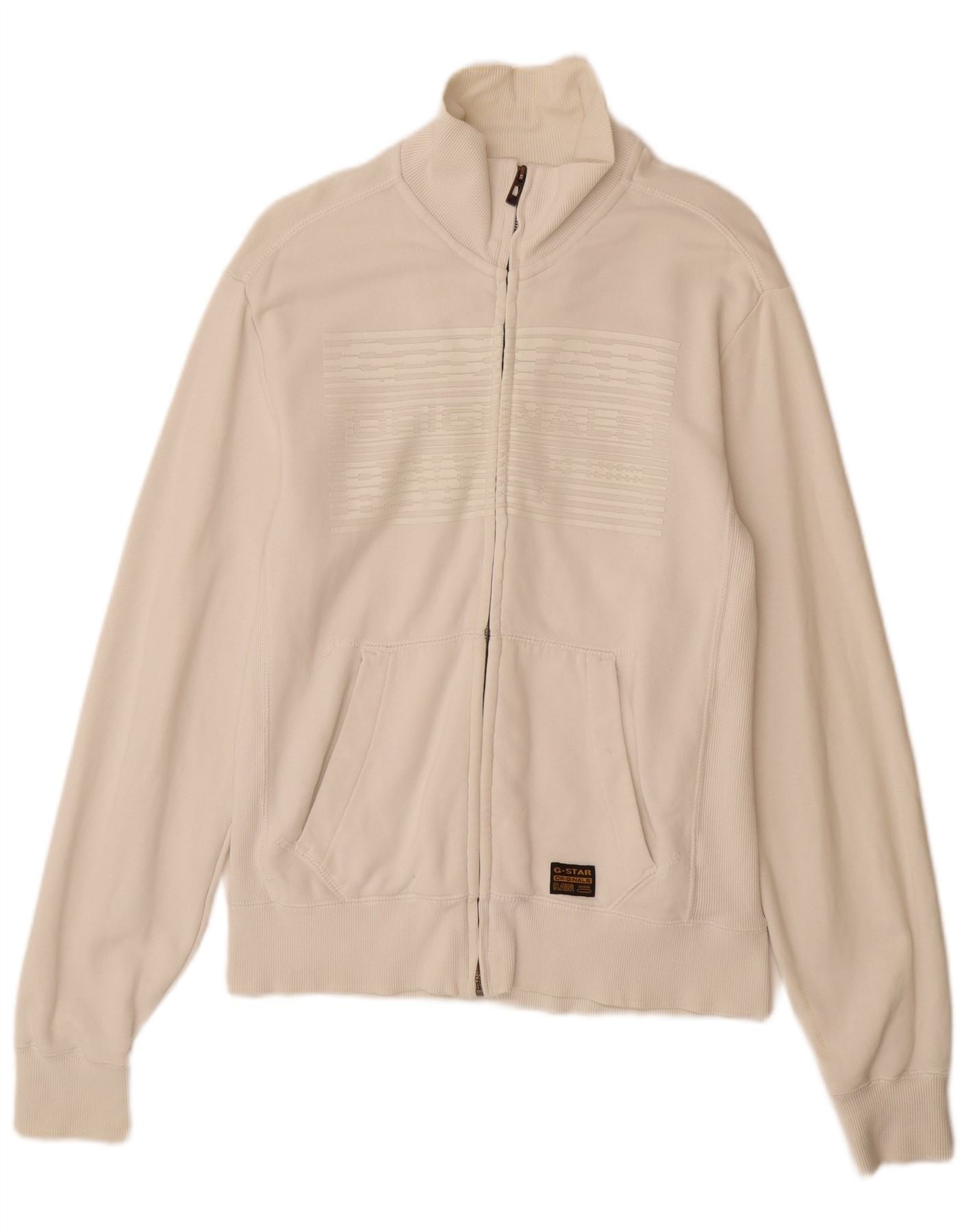 G-STAR Mens Tracksuit Top Jacket Medium White Cotton