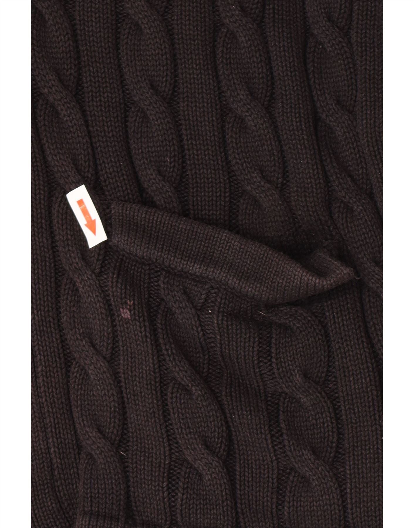 - AI Description: This Gant mens cardigan sweater is crafted from a rich black stretch cotton knit. It features a distinctive cable knit texture throughout. The collared shawl neck and button-up front offer classic appeal. Long sleeves and a regular fit ensure comfortable wear. Two front pockets add practical detail. This piece combines warmth with timeless style.