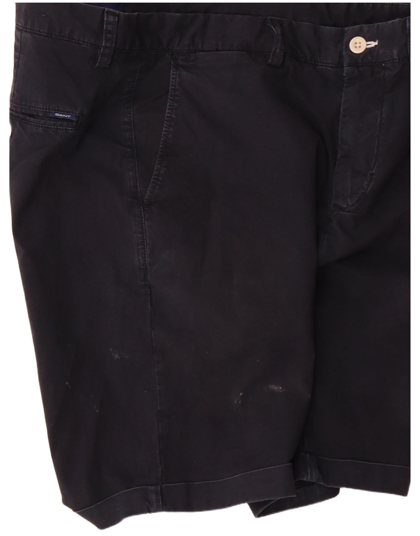 - AI Description: This Gant mens Chino Shorts are crafted from a woven fabric in a deep navy blue. They feature a regular fit and a straight leg cut, offering classic comfort. The button closure provides a secure and traditional fastening. Practical pockets are included for convenience. This unpatterned design ensures versatile styling for any casual occasion.