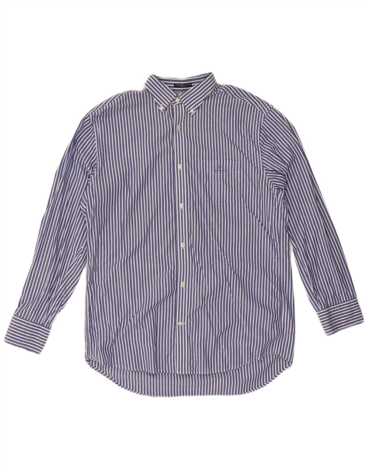 GANT Mens Regular Fit Shirt Size 41/42 16 1/2 Large Blue Pinstripe Cotton