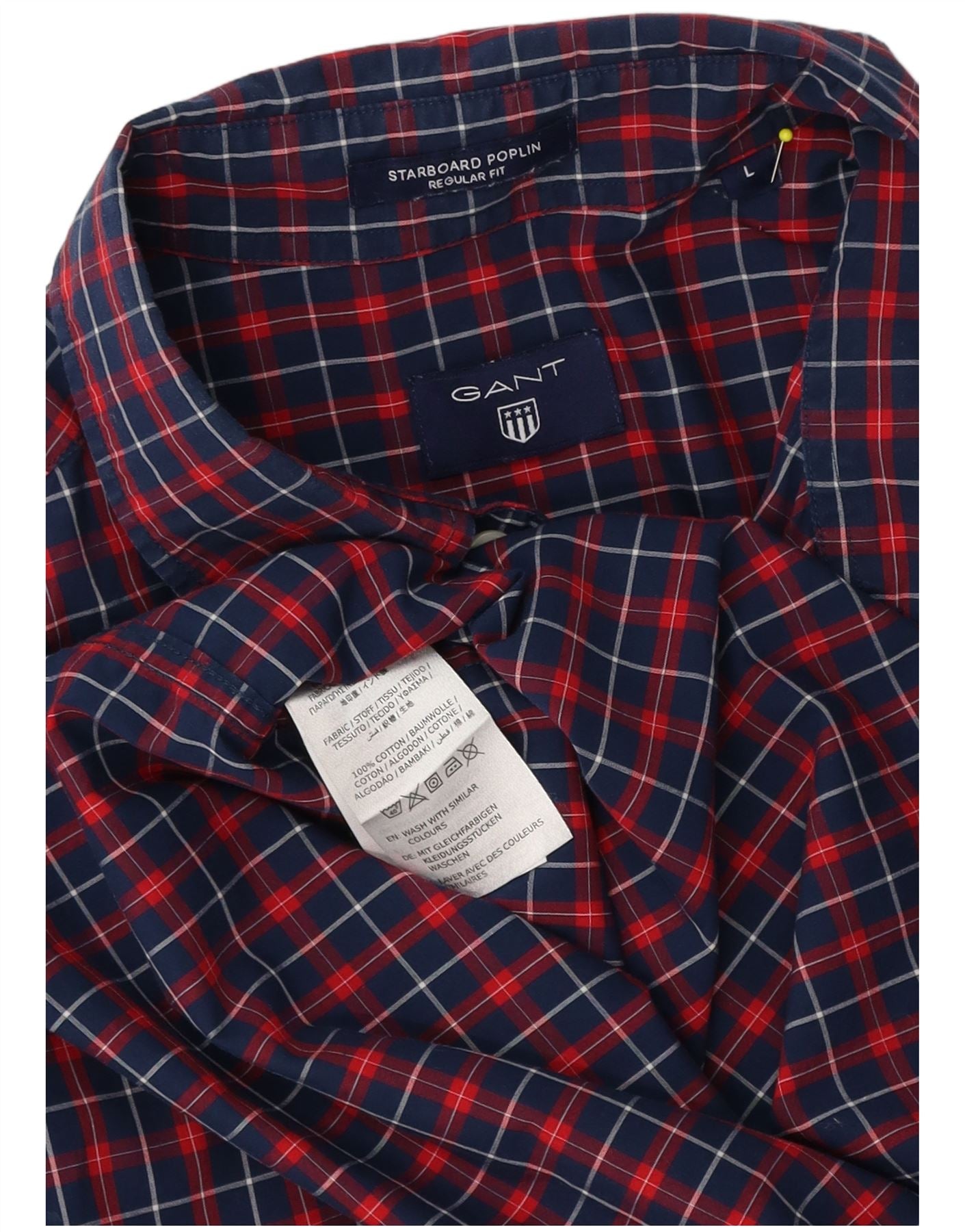 Gant Mens Starboard Poplin Short Sleeve Shirt Large Navy Blue Check