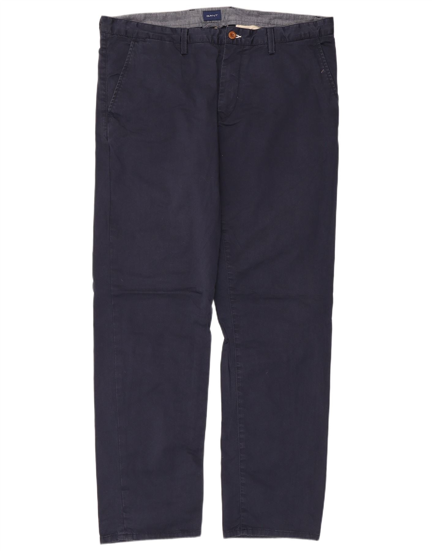 GANT Mens Straight Chino Trousers W40 L34 Navy Blue Cotton