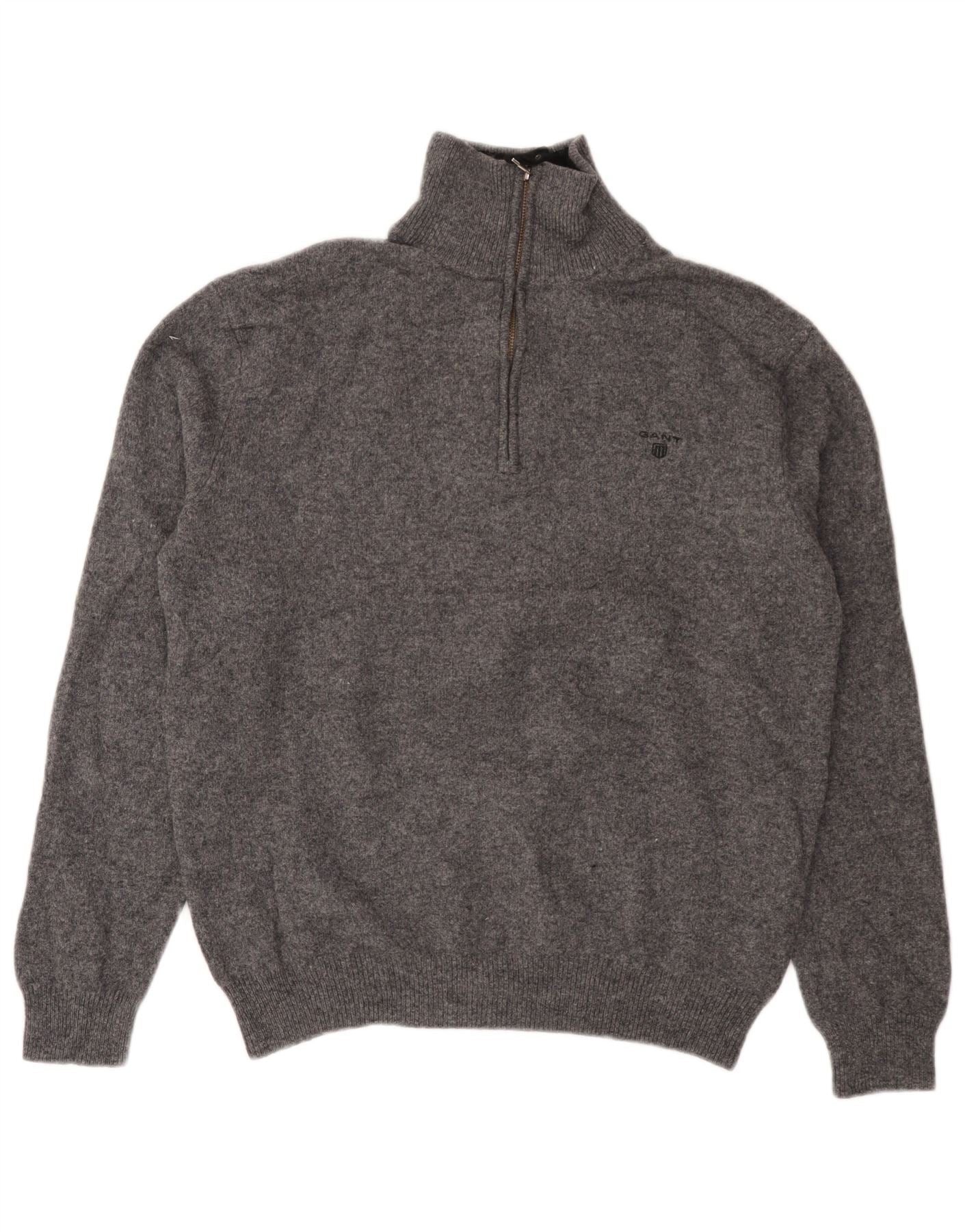 GANT Mens Zip Neck Jumper Sweater 2XL Grey Lambswool
