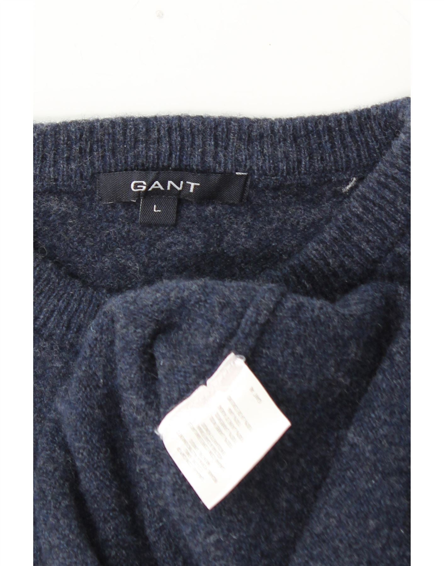 GANT Womens Crew Neck Jumper Sweater UK 16 Large Navy Blue Lambswool