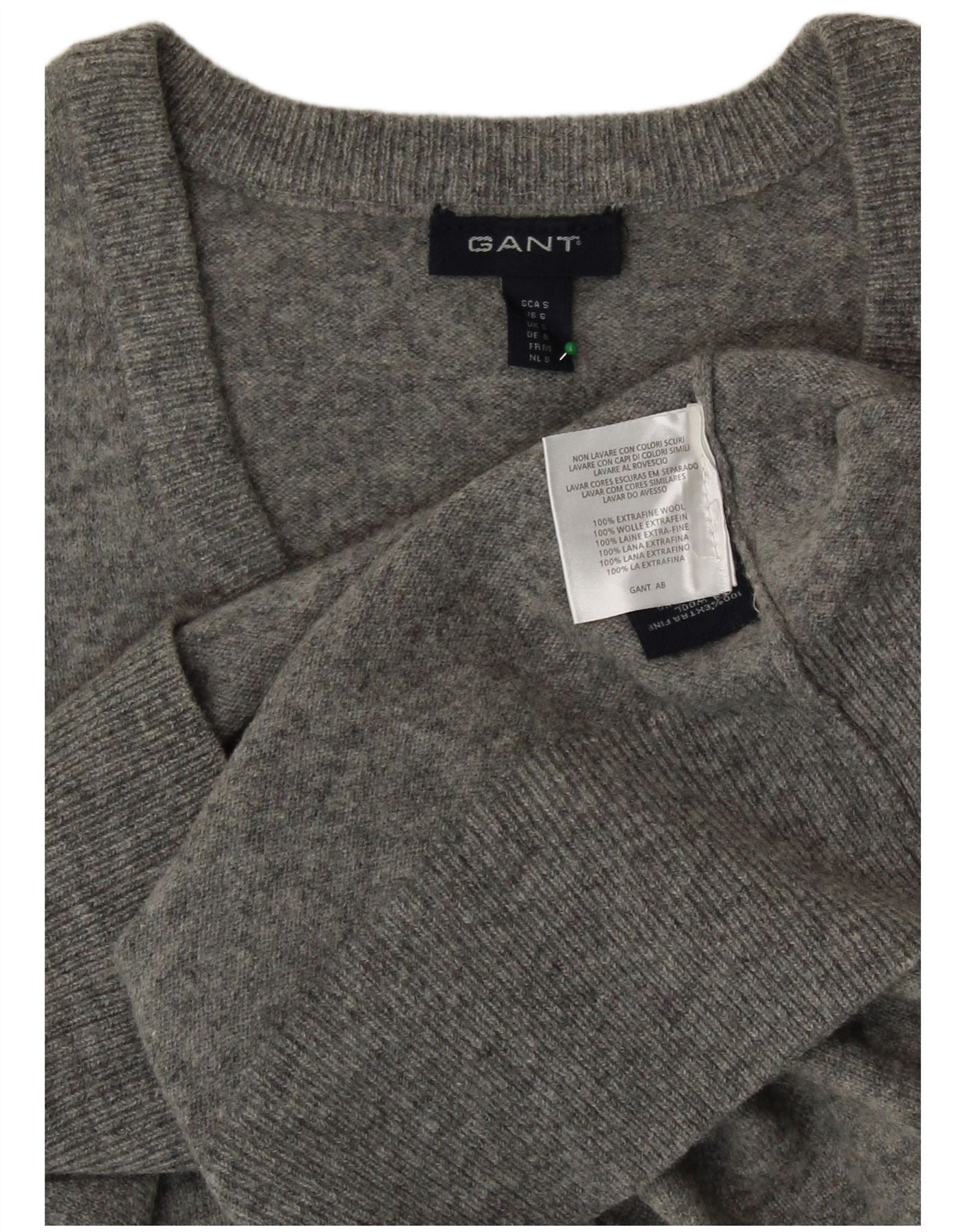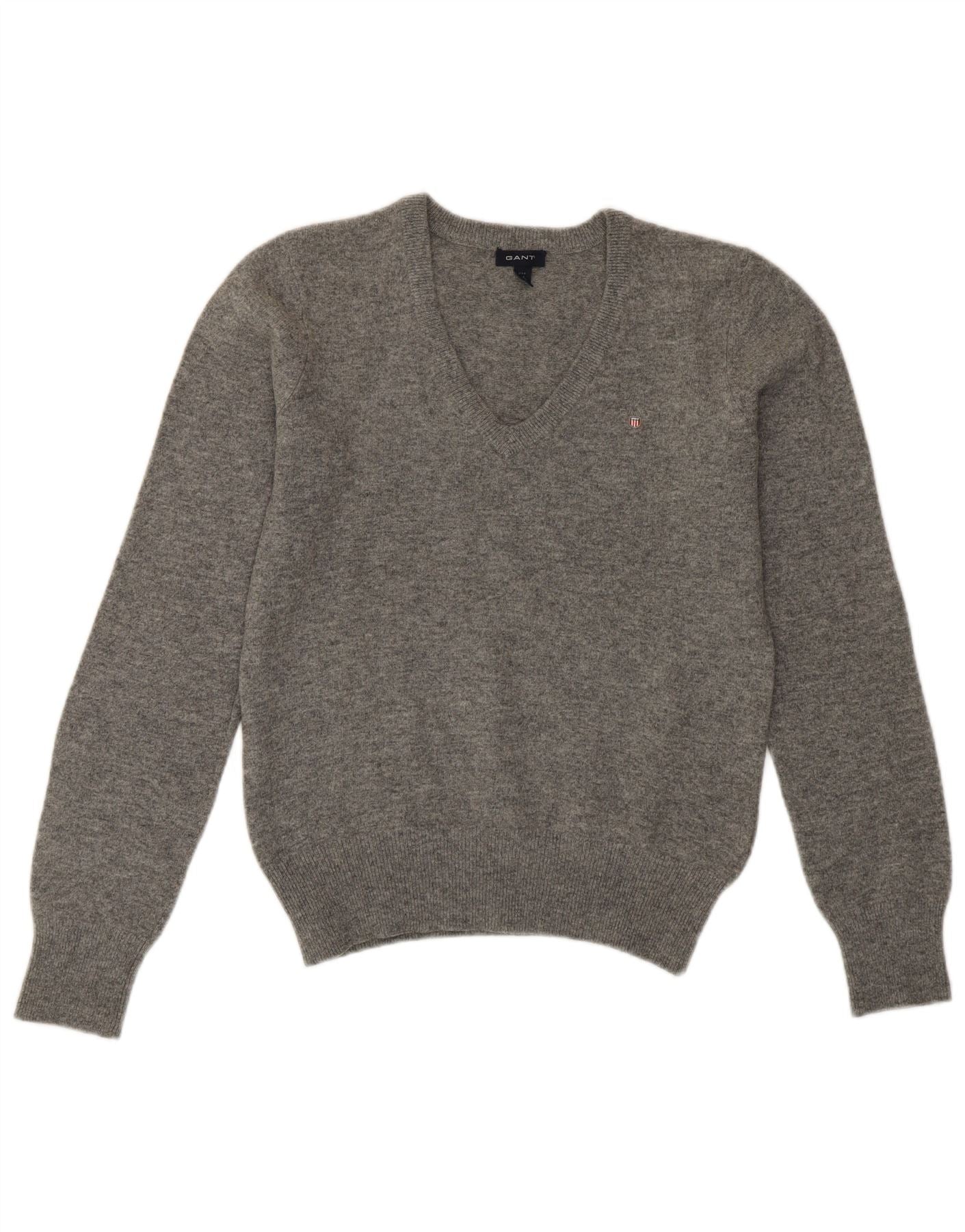 GANT Womens Crop V-Neck Jumper Sweater UK 10 Small Grey Wool