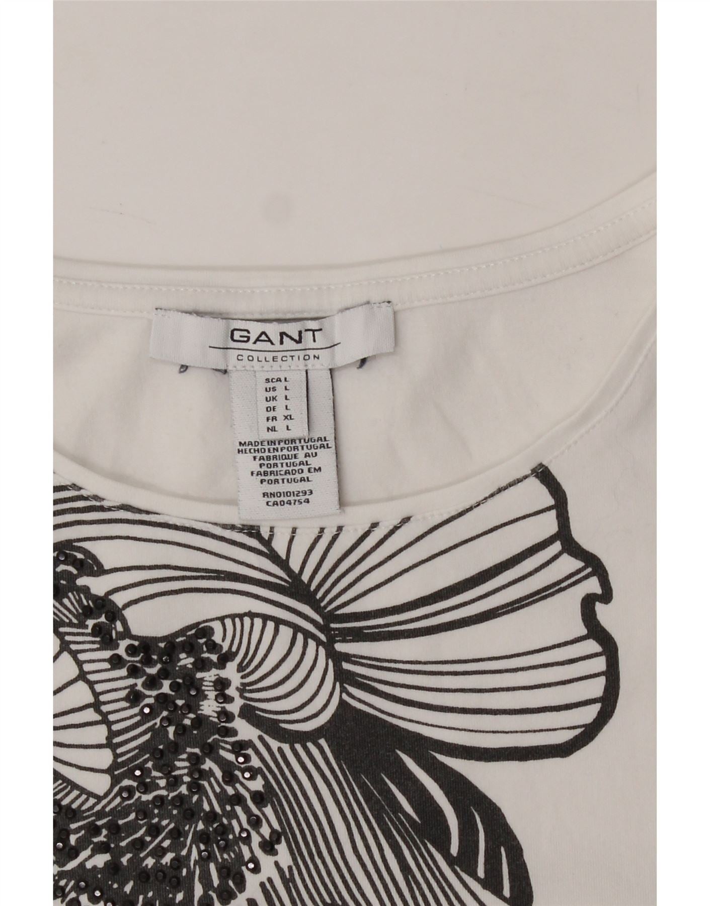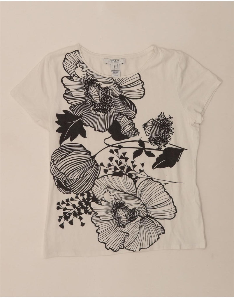 GANT Womens Graphic T-Shirt Top UK 14 Large White Floral Cotton