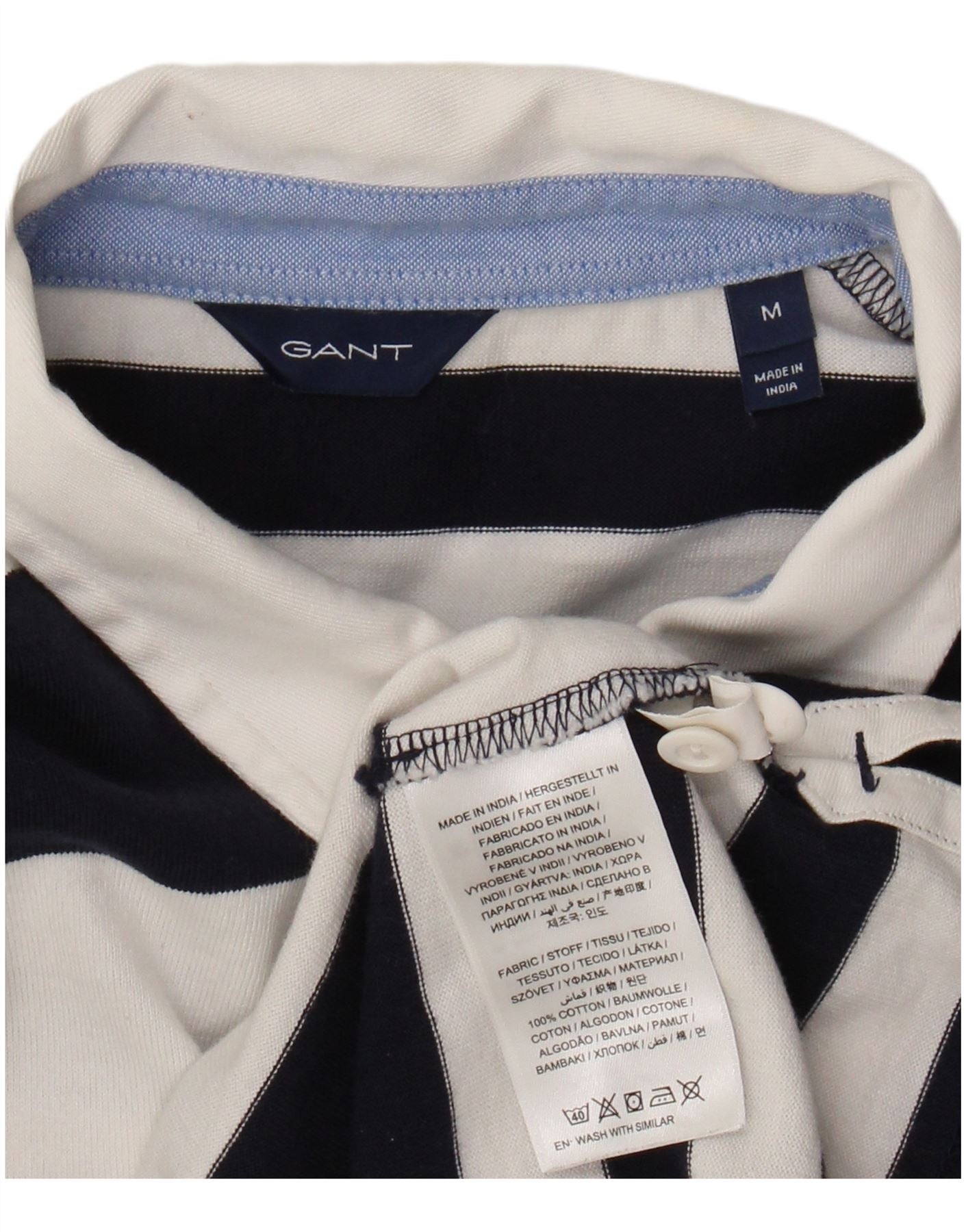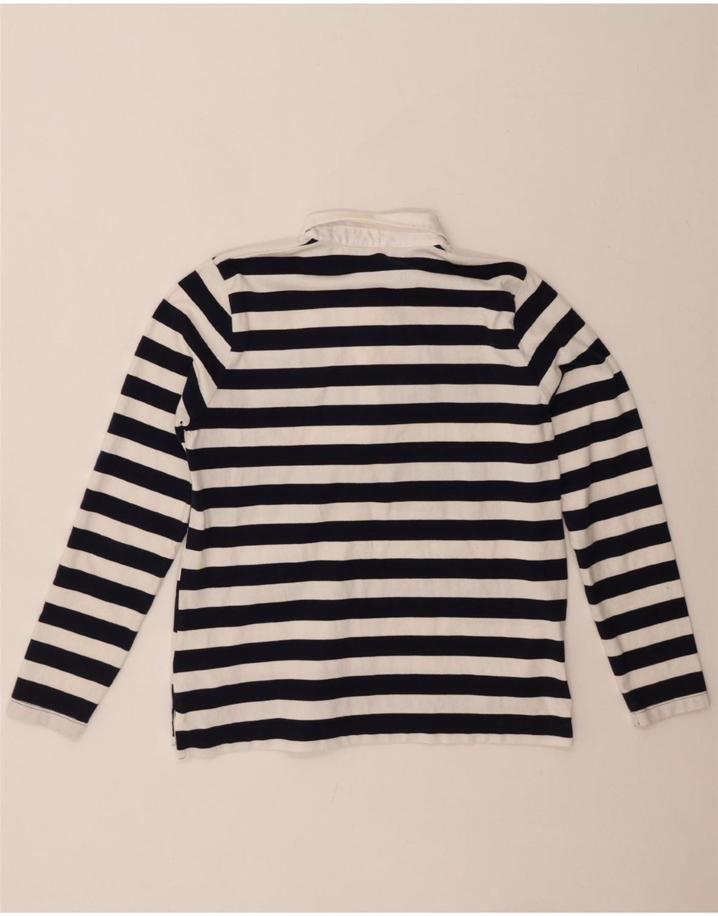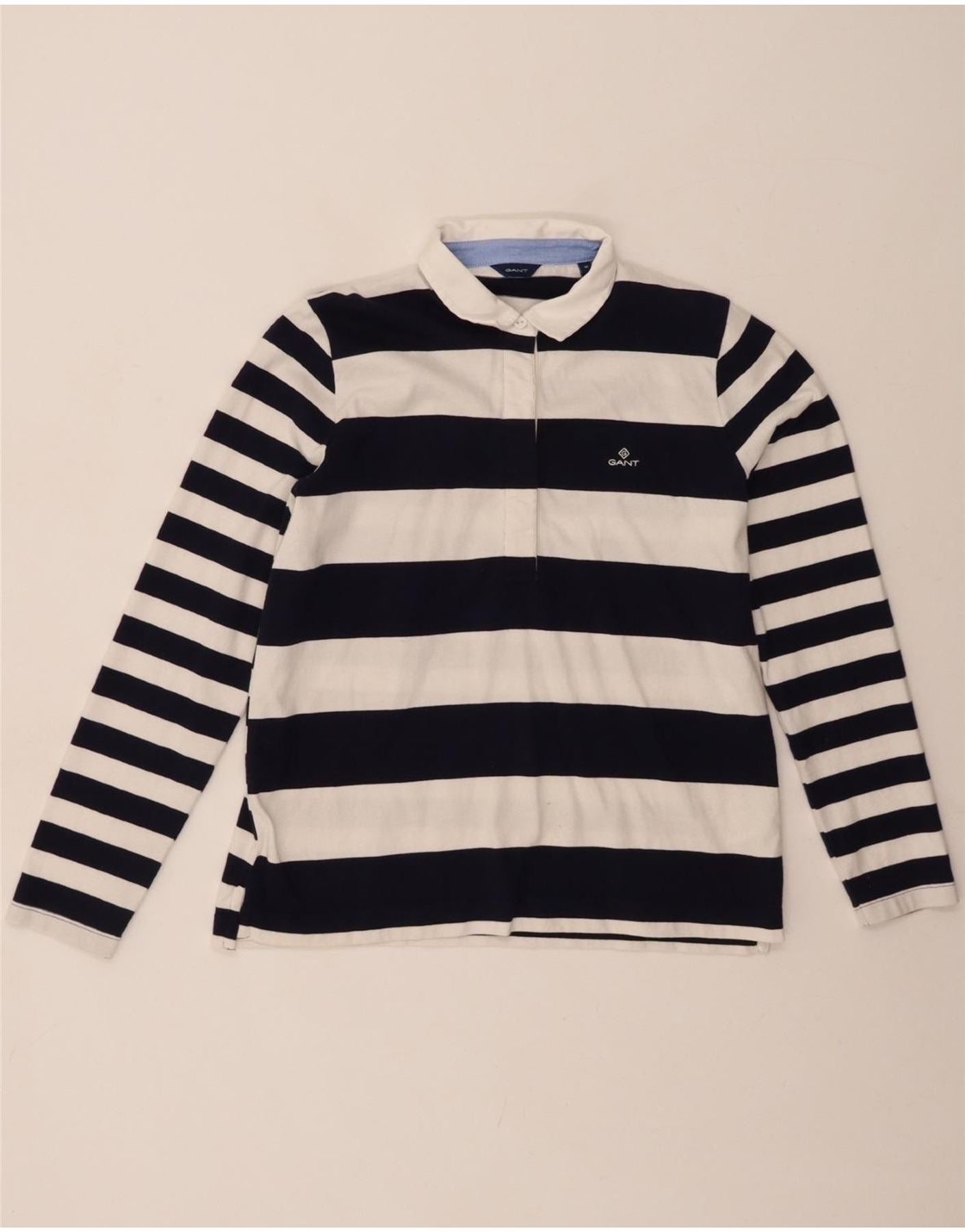 GANT Womens Long Sleeve Polo Shirt UK 12 Medium Black Striped Cotton