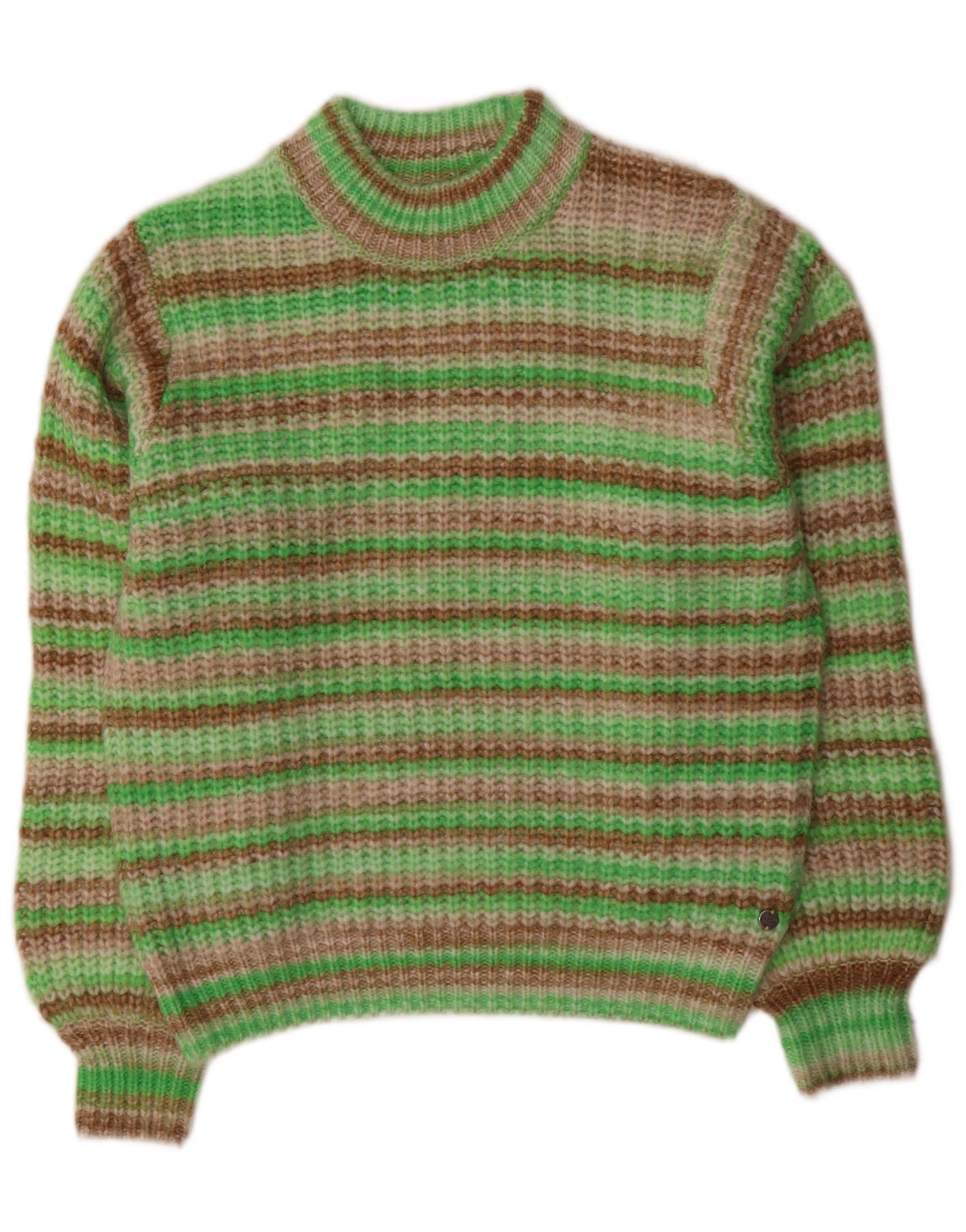 Garcia Womens Crew Neck Jumper Sweater UK 14 Medium Green Striped