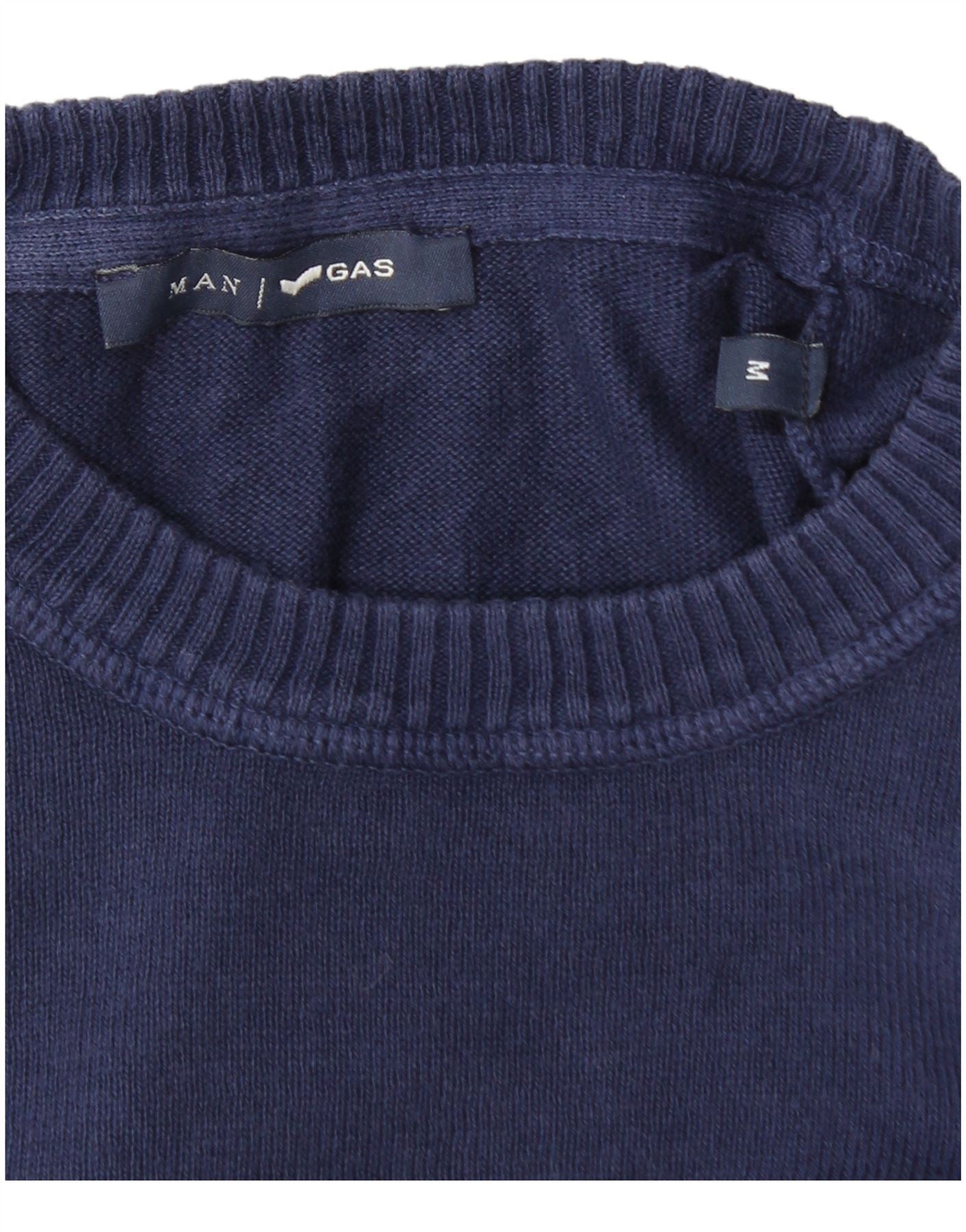 Gas Mens Crew Neck Jumper Sweater Medium Navy Blue Cotton