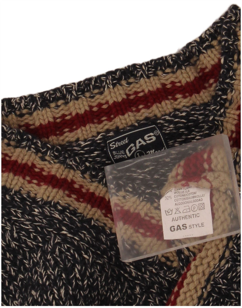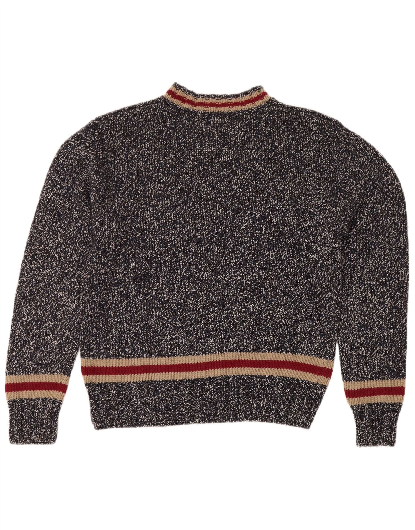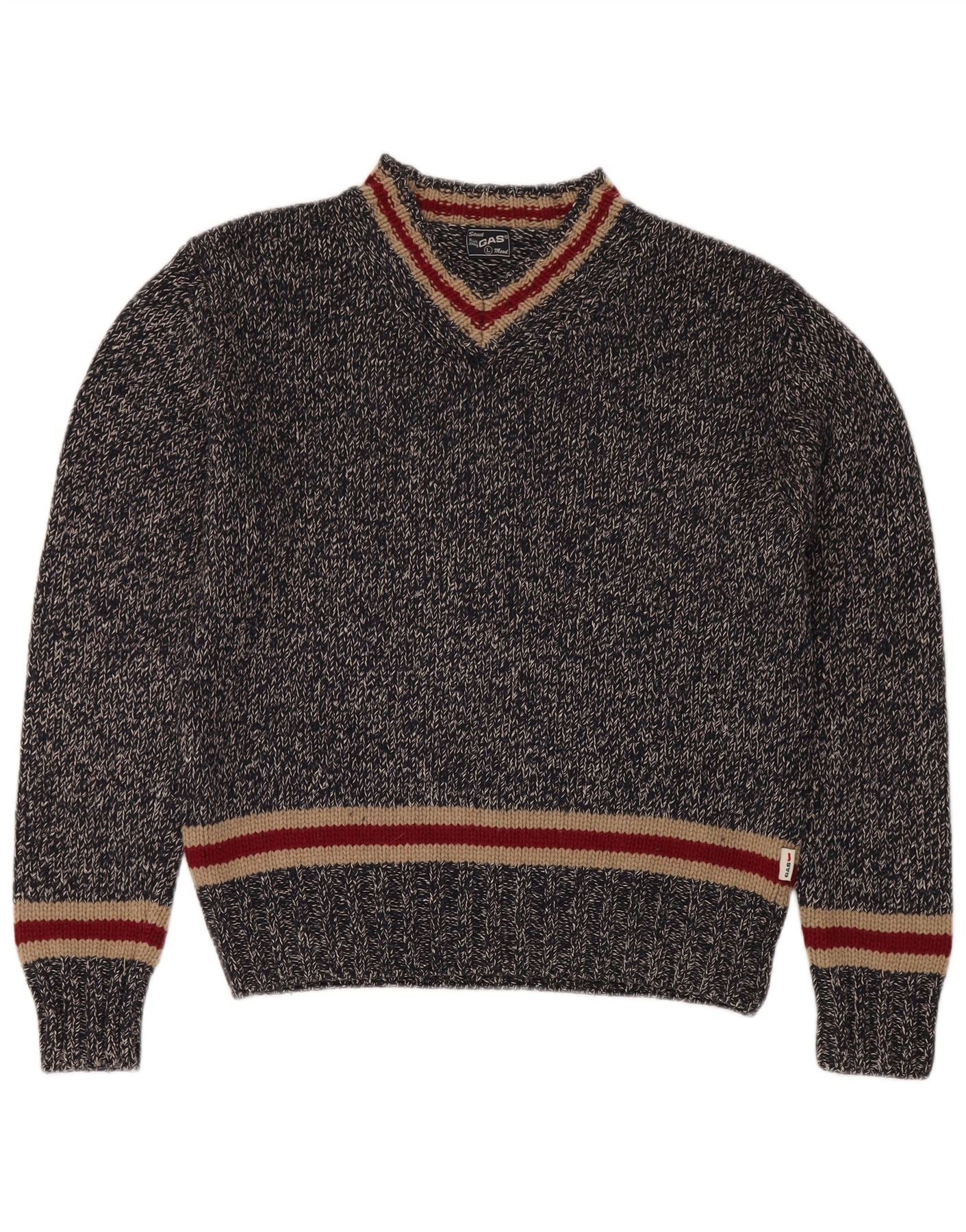 GAS Mens V-Neck Jumper Sweater Large Navy Blue Flecked Wool