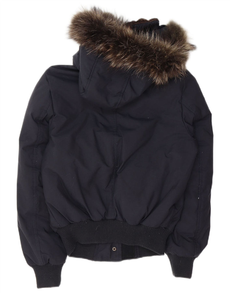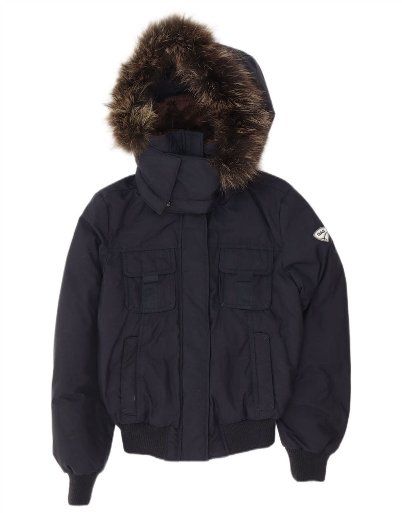 GAS Womens Hooded Padded Jacket UK 12 Medium Navy Blue Polyamide