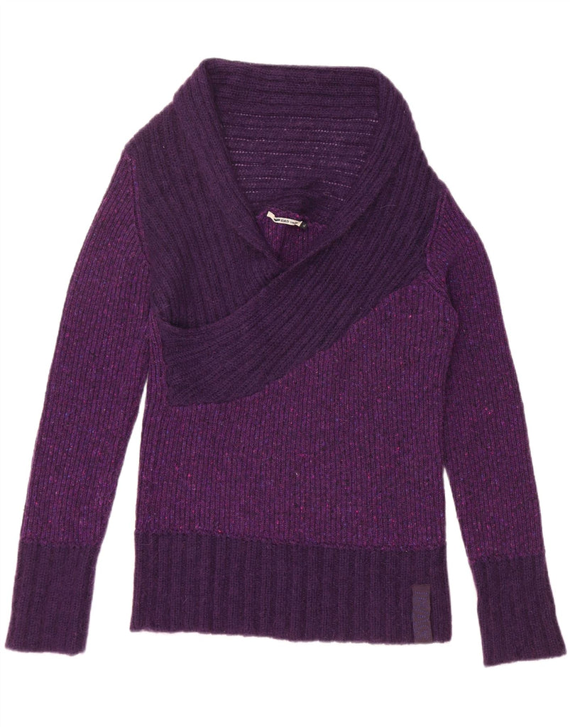 GAS Womens Shawl Neck Jumper Sweater UK 18 XL Purple Flecked Cupro