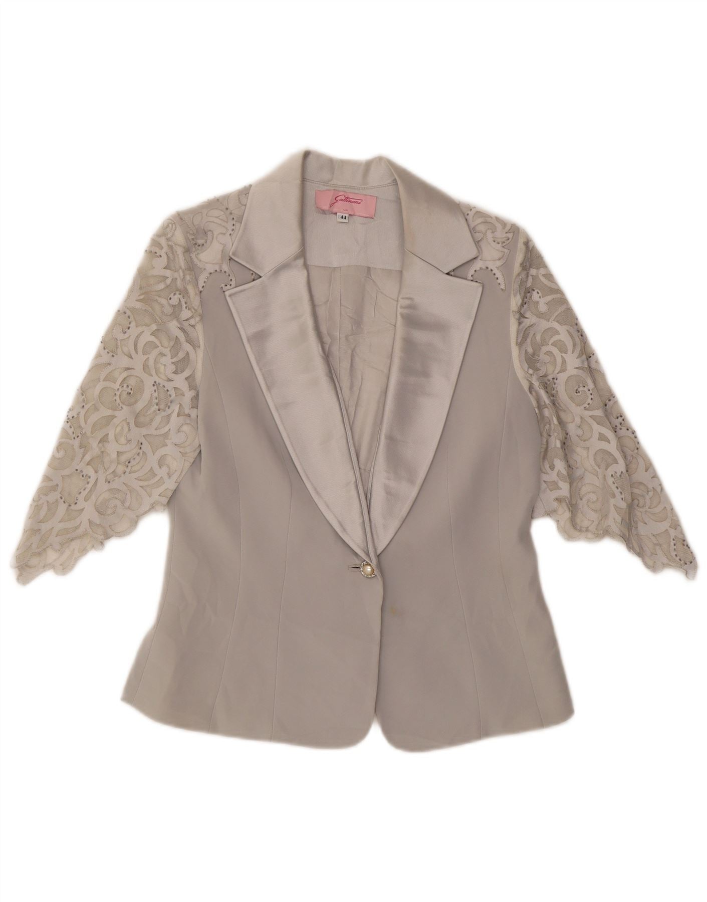 GATTINONI Womens Short Sleeve Blazer Jacket UK 14 Medium Grey Floral