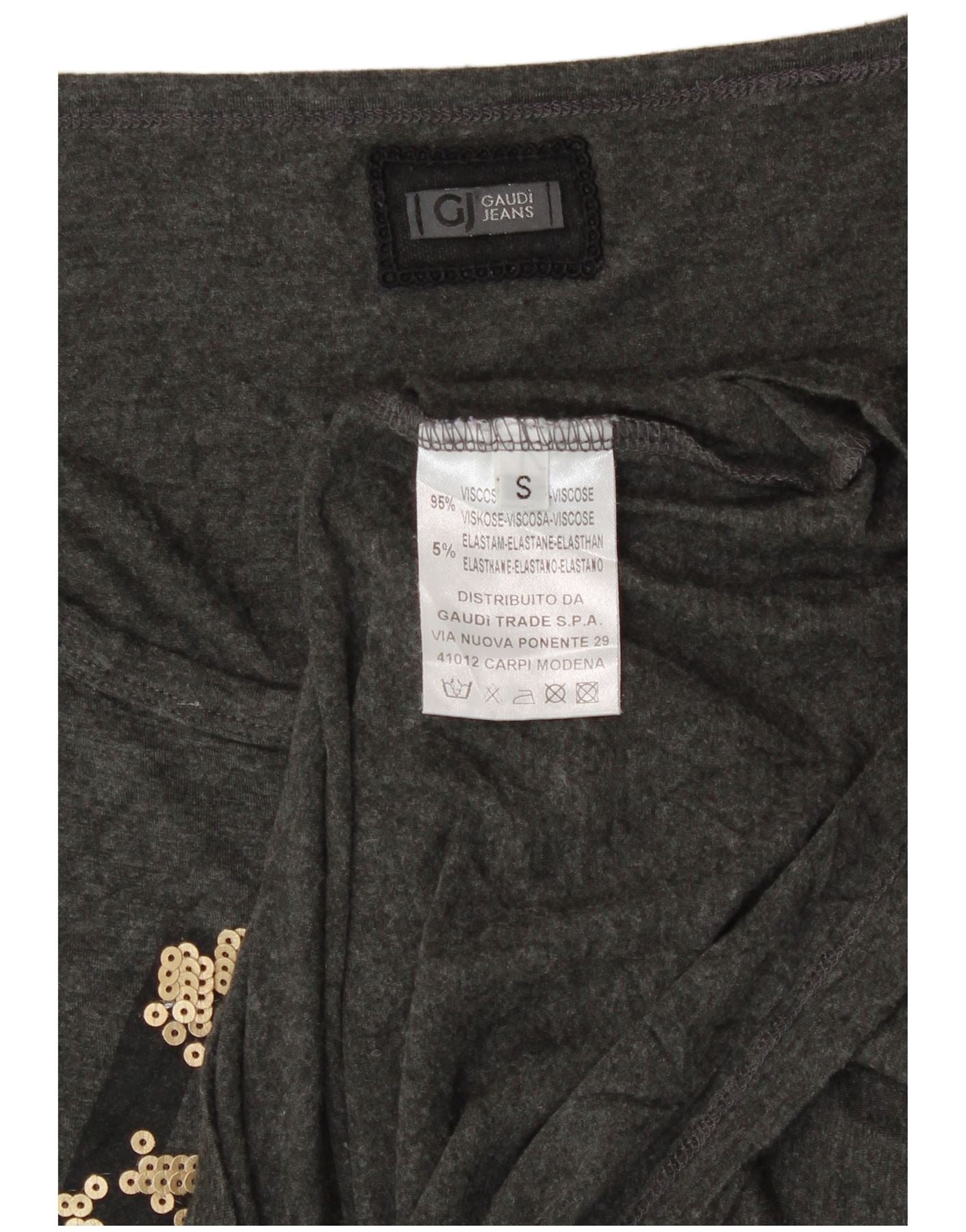 Gaudi Womens Oversized Graphic Top Long Sleeve UK 10 Small Grey Viscose