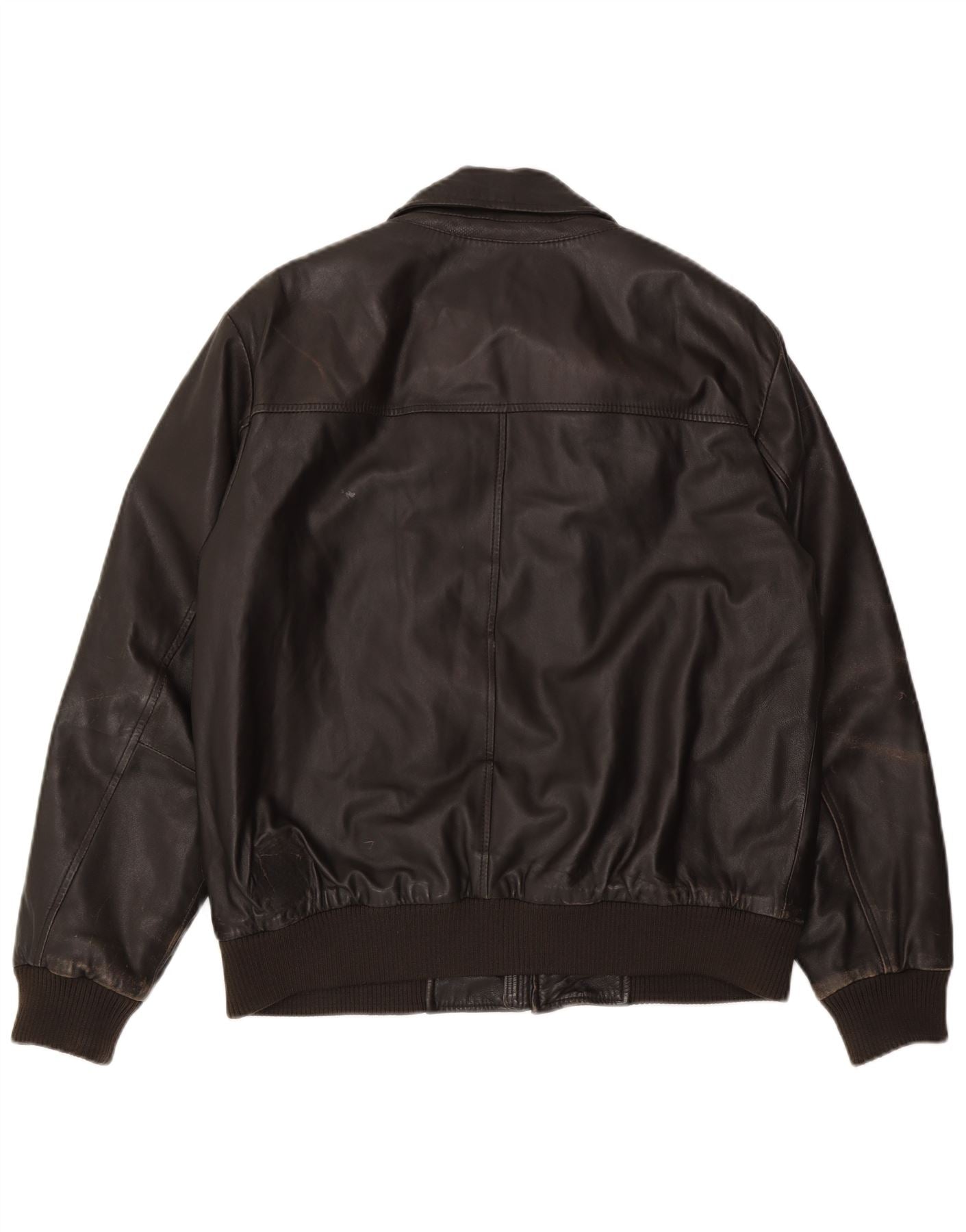 Geox Mens Bomber Leather Jacket UK 42 XL Black Leather