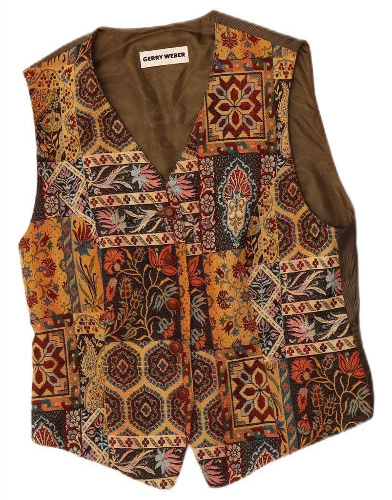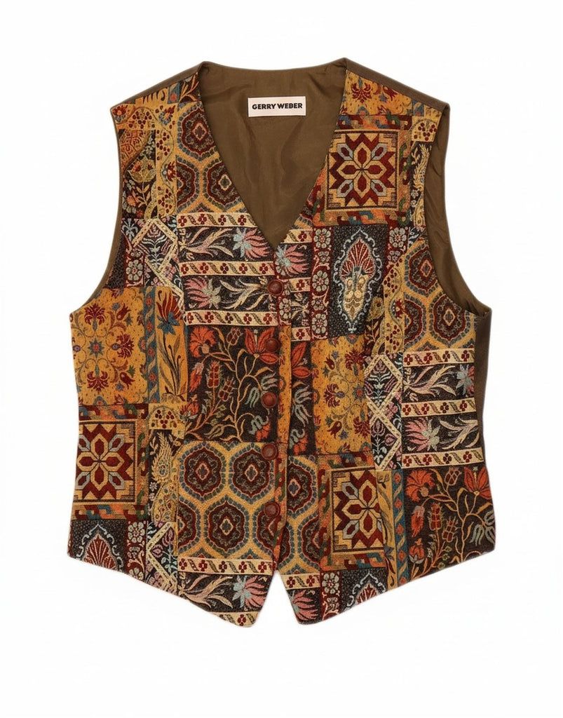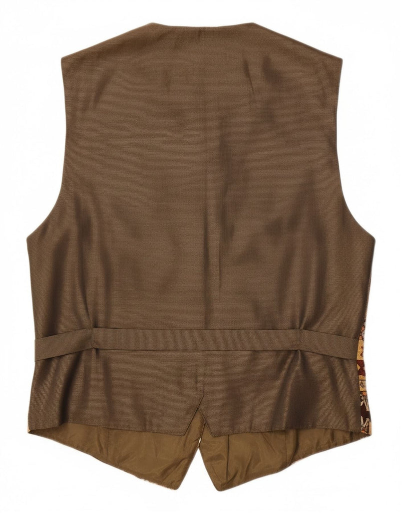 GERRY WEBER Mens Waistcoat Small Khaki Patchwork Viscose
