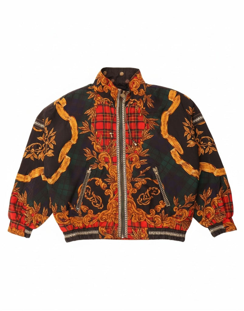 GIACCA Womens Oversized Abstract Pattern Bomber Jacket UK 14 Medium Green